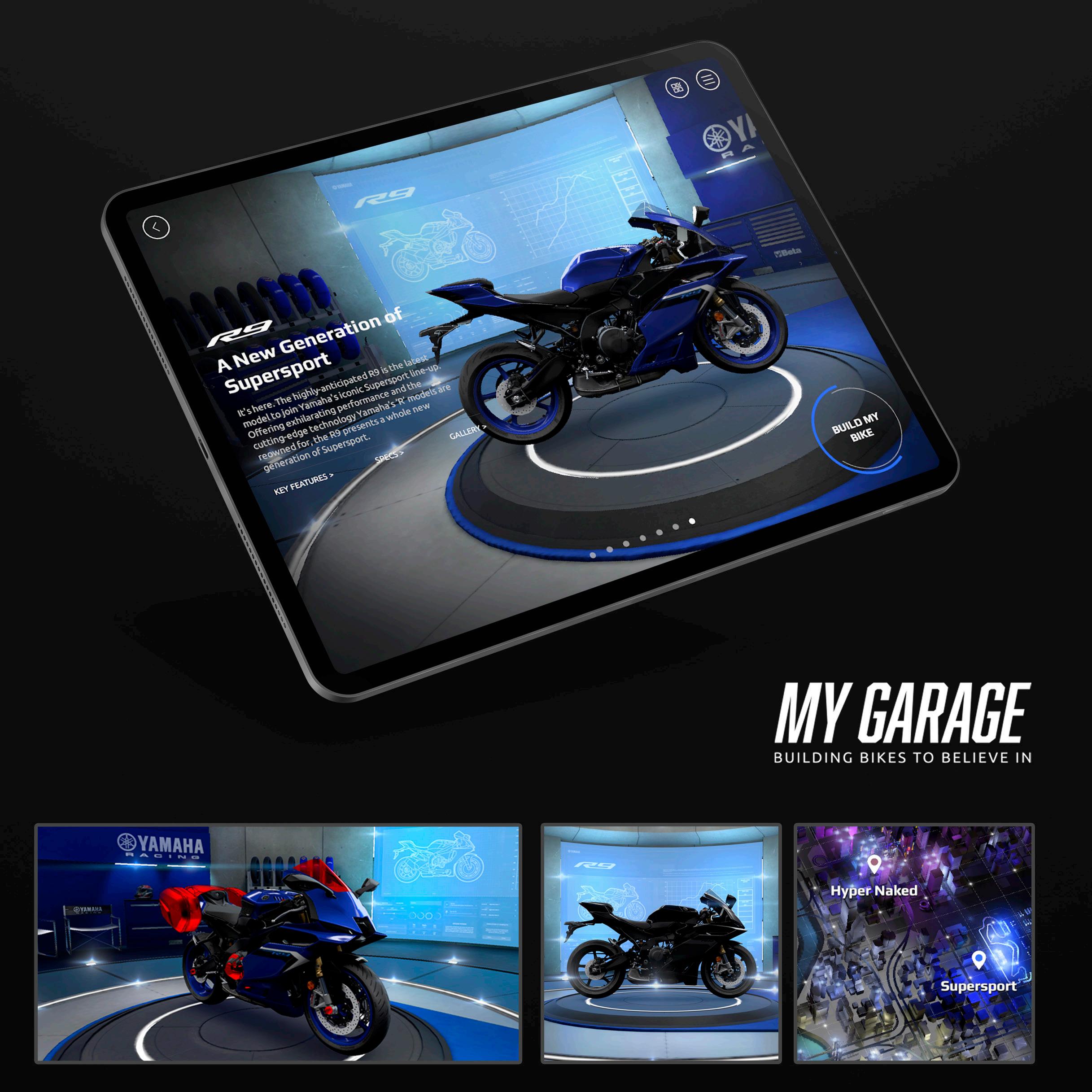 Den här kostnadsfria appen finns tillgänglig för både iOS och Android och du kan skapa din egen specialanpassade Yamaha R-serie genom att lägga till eller ta bort olika Yamaha-originaltillbehör med ett musklick. Med MyGarage kan du från valfri vinkel visa Yamaha Supersport utrustad med dina drömtillbehör för att se vad som ser bäst ut.