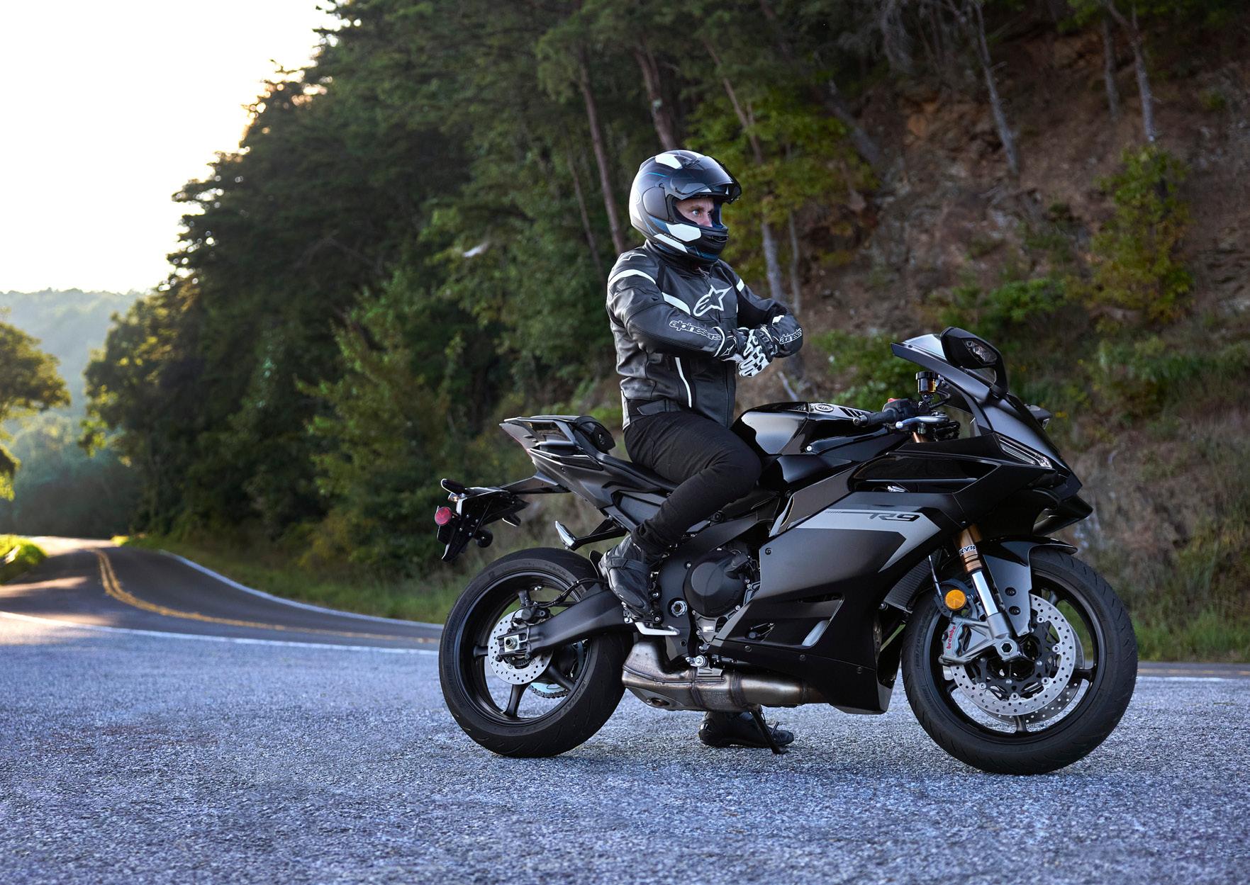 Den pigga CP2-motorn på 689 kubik med A&S-koppling ger acceleration med högt vridmoment för en spännande och givande körupplevelse både på bana och väg. Med en finish av färg och grafik från nästa generations Icon Blue har de supersmala aerodynamiska kåporna en aggressiv front med två lyktor och en kraftfull och central LED-strålkastare. Och den spetsiga bakdelen och djupt formade tanken har R-seriens rena DNA, medan R7:s bromsarna och fjädringen med hög specifikation ger optimal kontroll vid kurvtagning och bromsning.