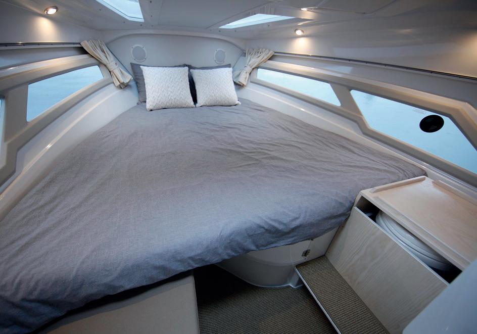 Bord til cockpit, LED-belysning i bov, solseng i bov