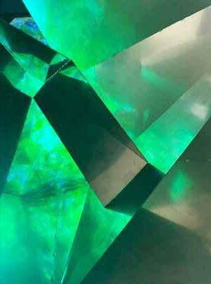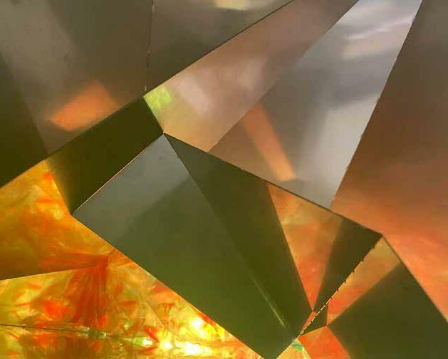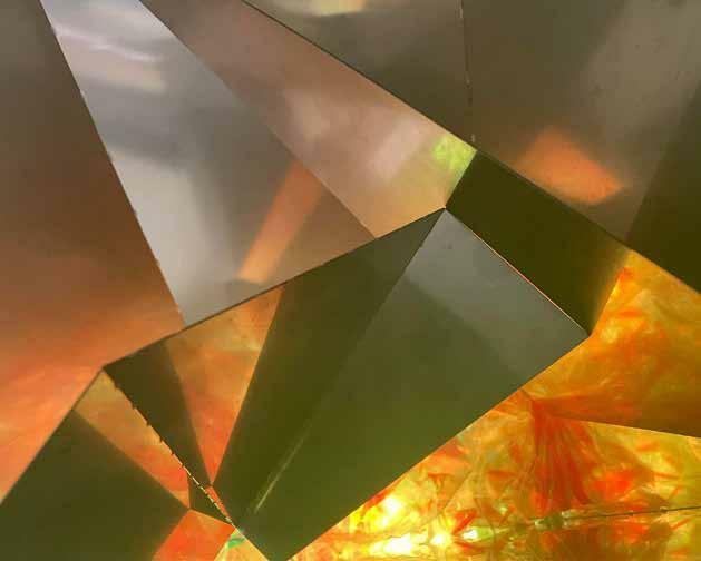 The mirror finish on stainless steel provides a bright, shiny and re flective surface that allows for the abstraction of light, form, move ment, and the body’s relationship to space. What is foreground, becomes background – what is up is down. There is a lightness to the spaces produced.