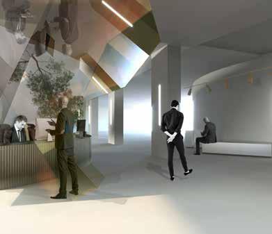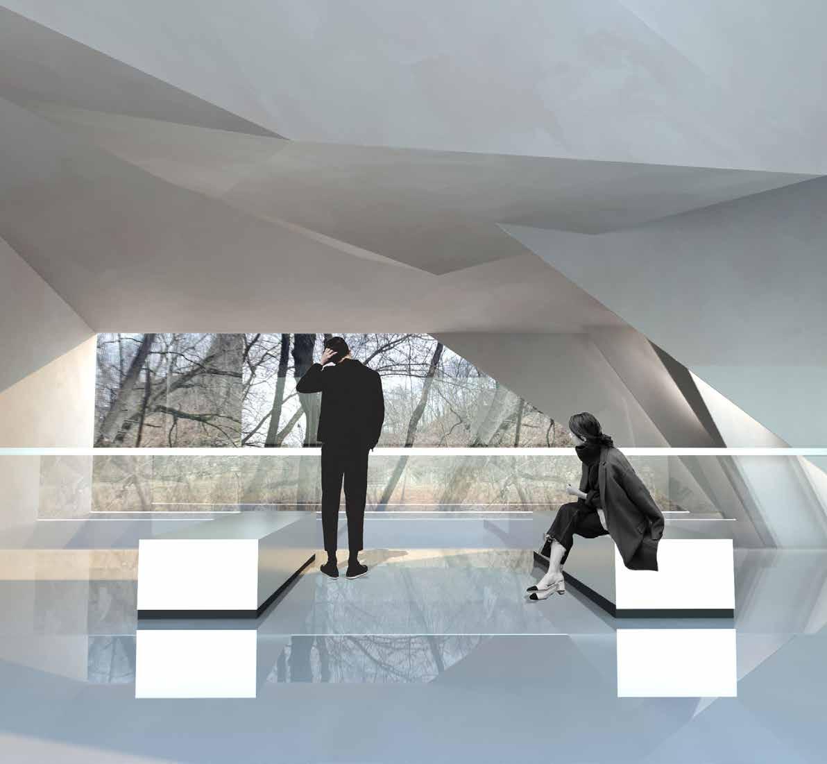 By layering and nesting stainless steel into a series of “lens es,” the original photography became a base for renderings of a visitor’s center in Hazard, KY, where spaces for movement, light, and performance come to the forefront.