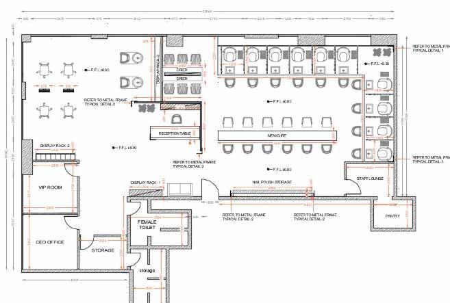 Industrial design ladies’ salon with a feminine twist.Painted nails Saloon Concept played around modern comfort area with large space and reasonable budget,indus trial design with clean minimalist lines and pink color to add a feminine twist. grey is the total color area, giving the space the modern luxury style and the comfort people need to relax.