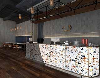 The soft Cafe concept is a mix of modern and Mediterranean styles. This region is known for its turquoise waters sparkling sunlight days and vibrant produce and flowers, which are mirrored in Mediterranean design and this is what we needed to reflect in the area. focusing on the style’s most important elements such as rustic furniture, hardwood or stone tile floors, wall textures, and the olive tree.