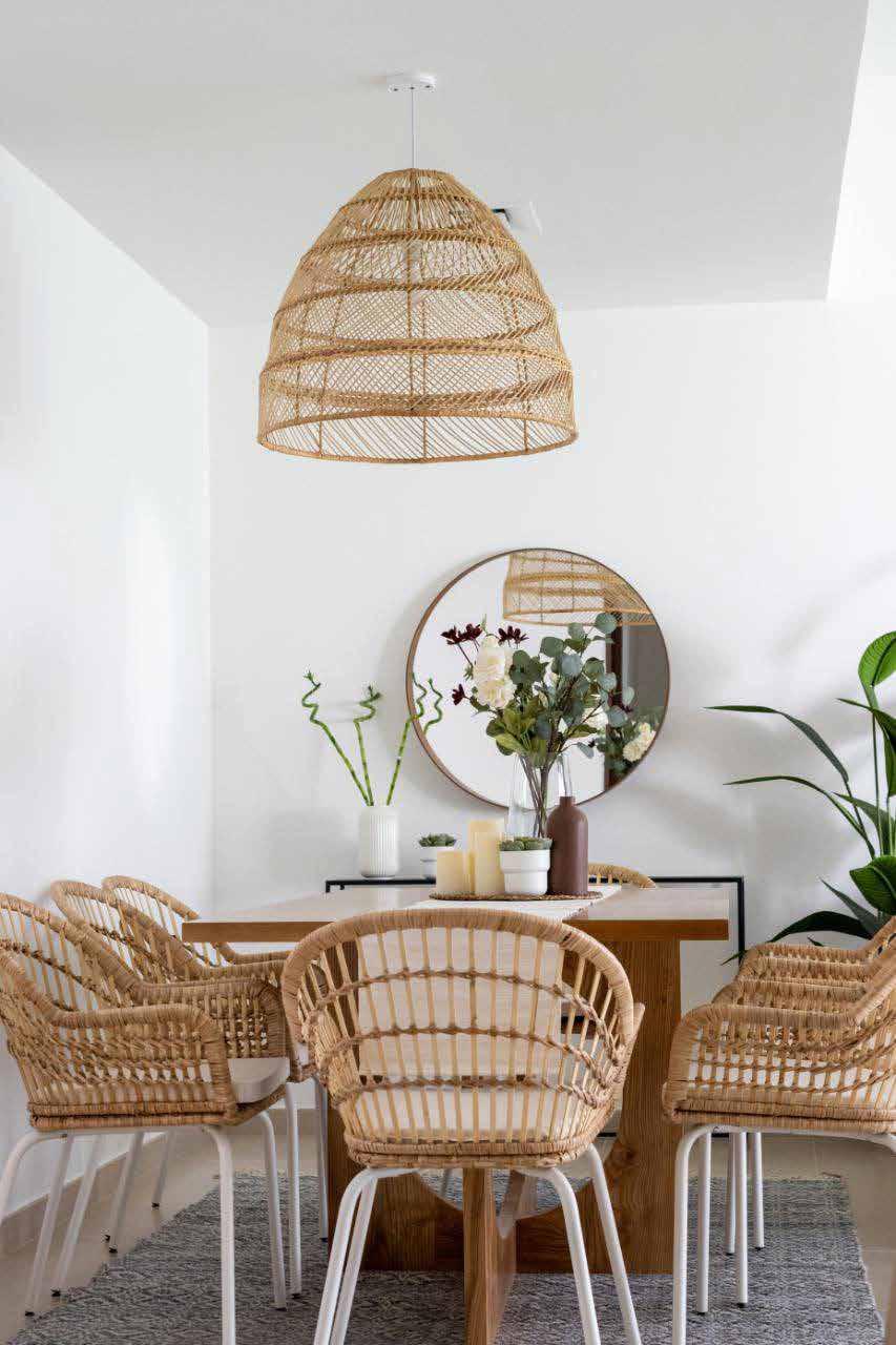 For a small family in Dubai needed to have sunlight and nature feeling all day bohemian style and rattan furniture was the best choice for the area.