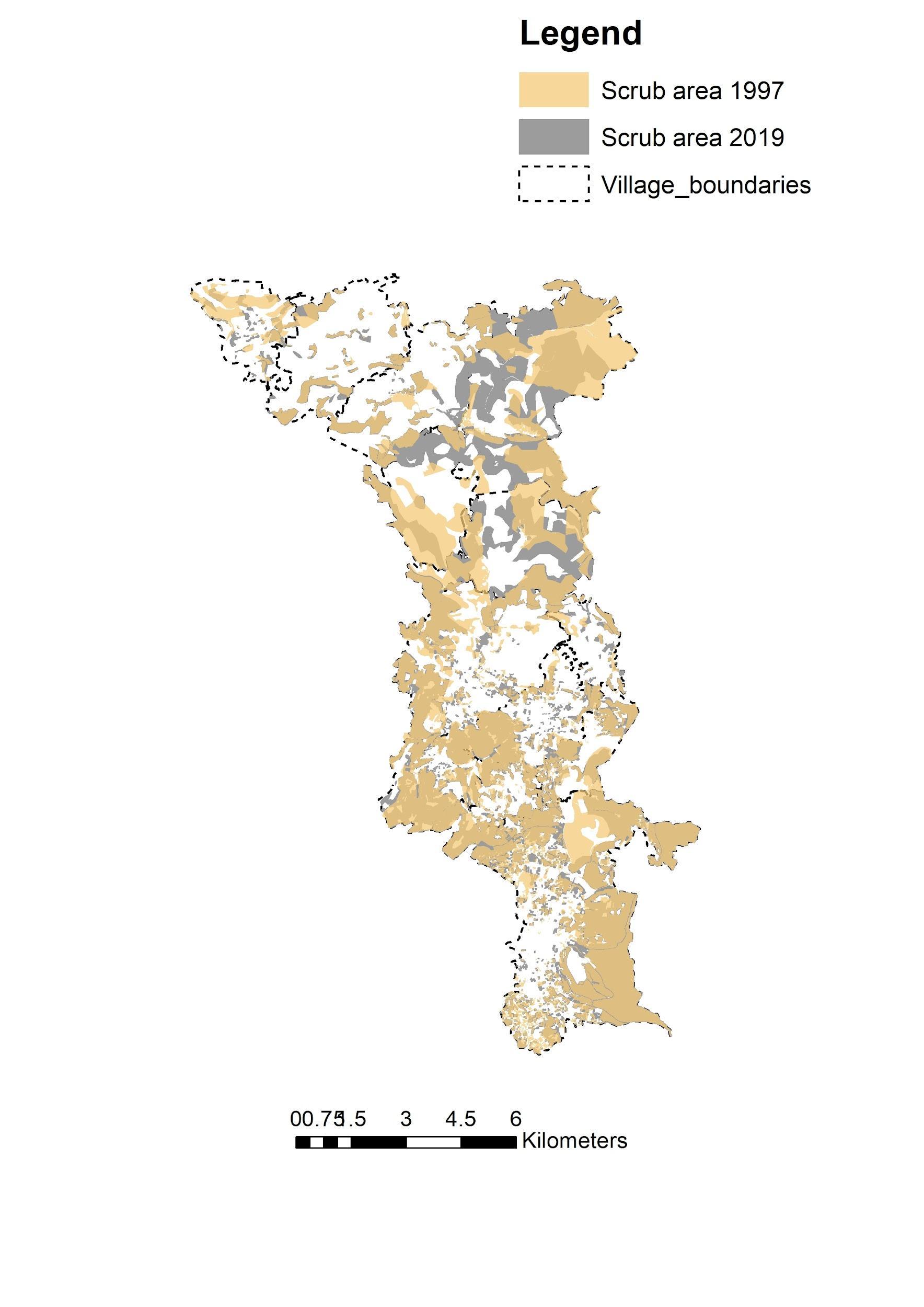 Table number 1: Scrub area 1997 vs. 2019.