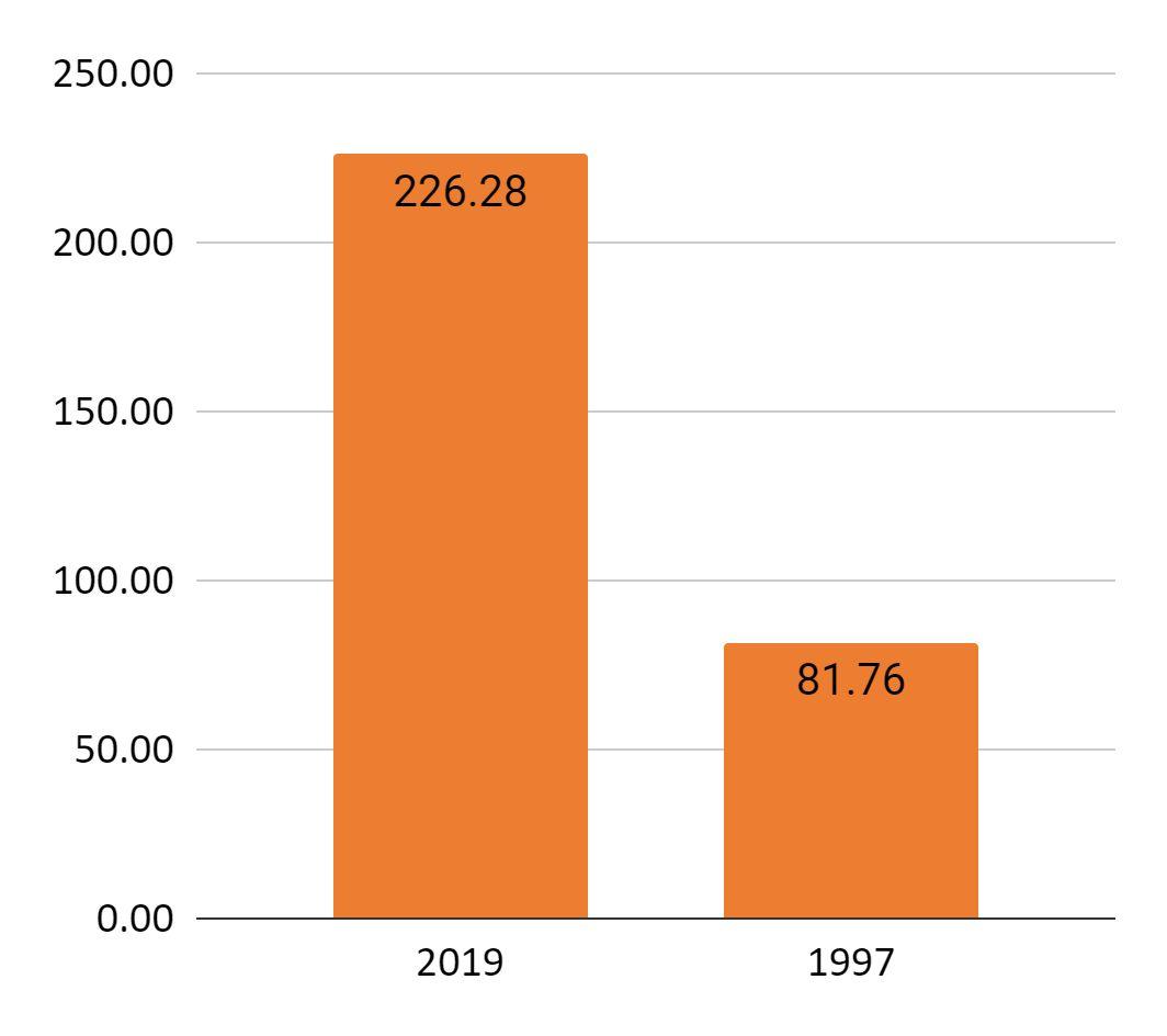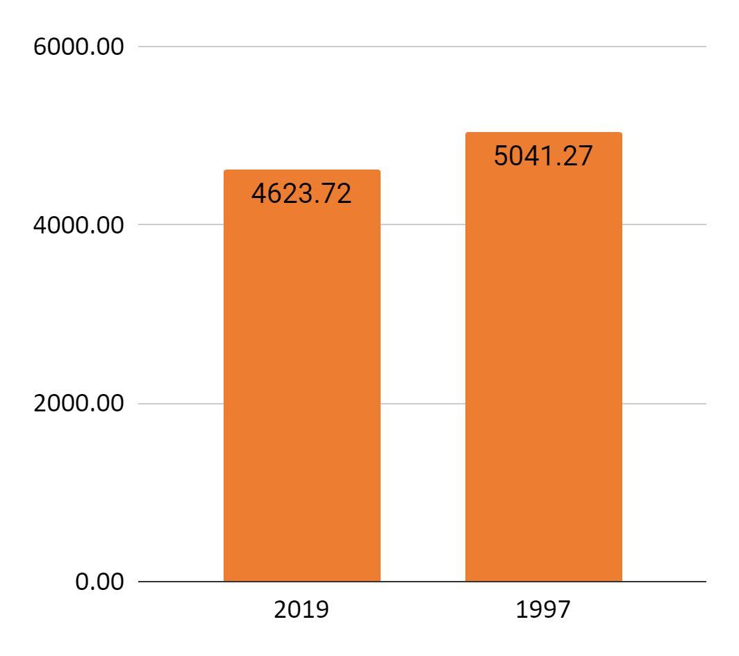 Diagram 17: the avarege size of patches 2019 vs 1997