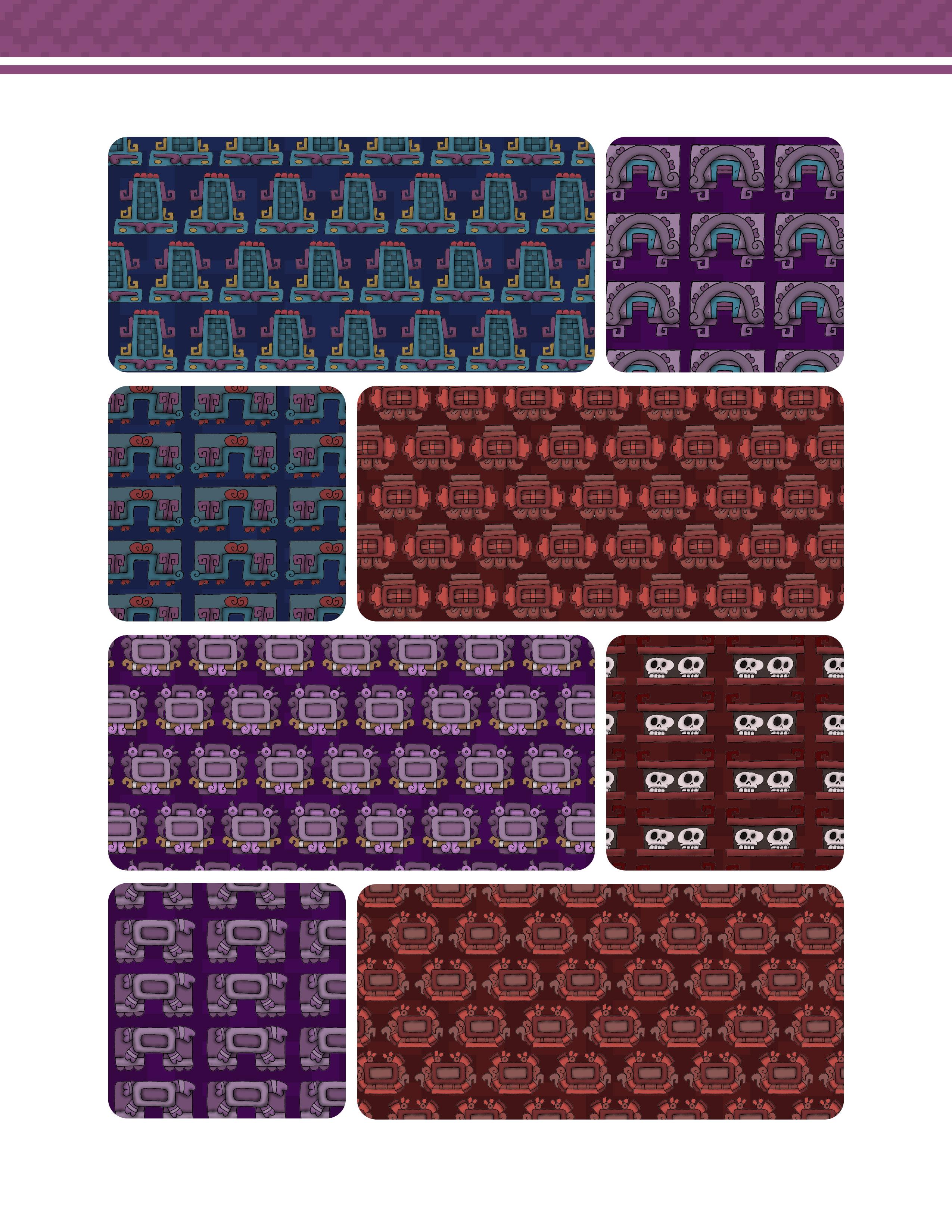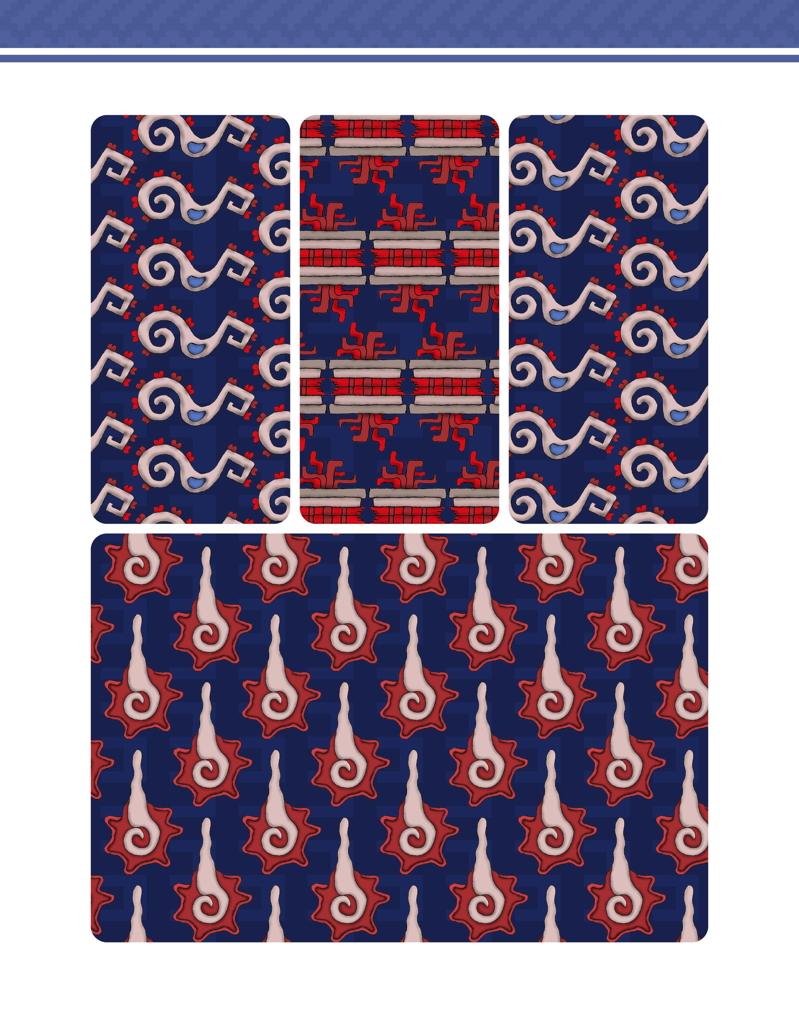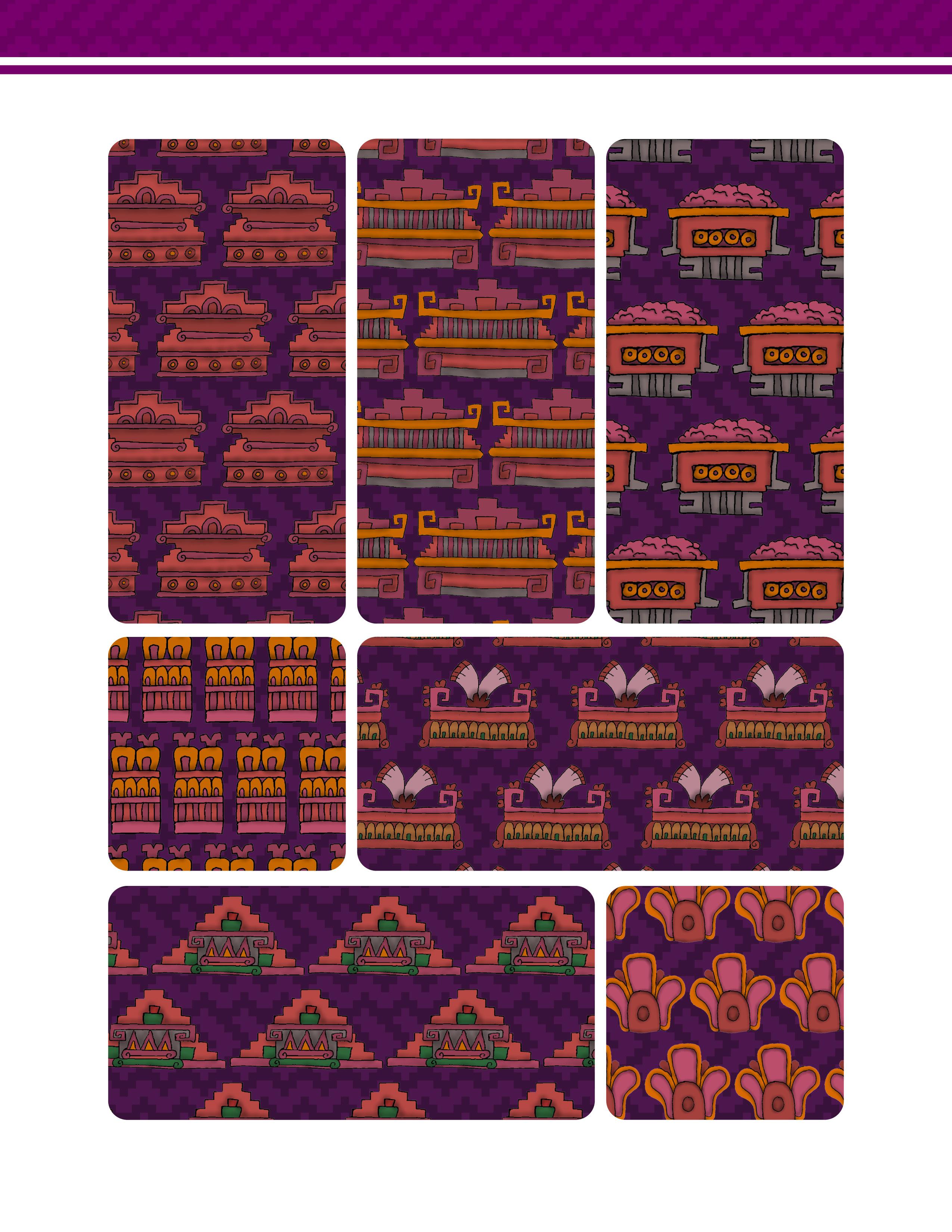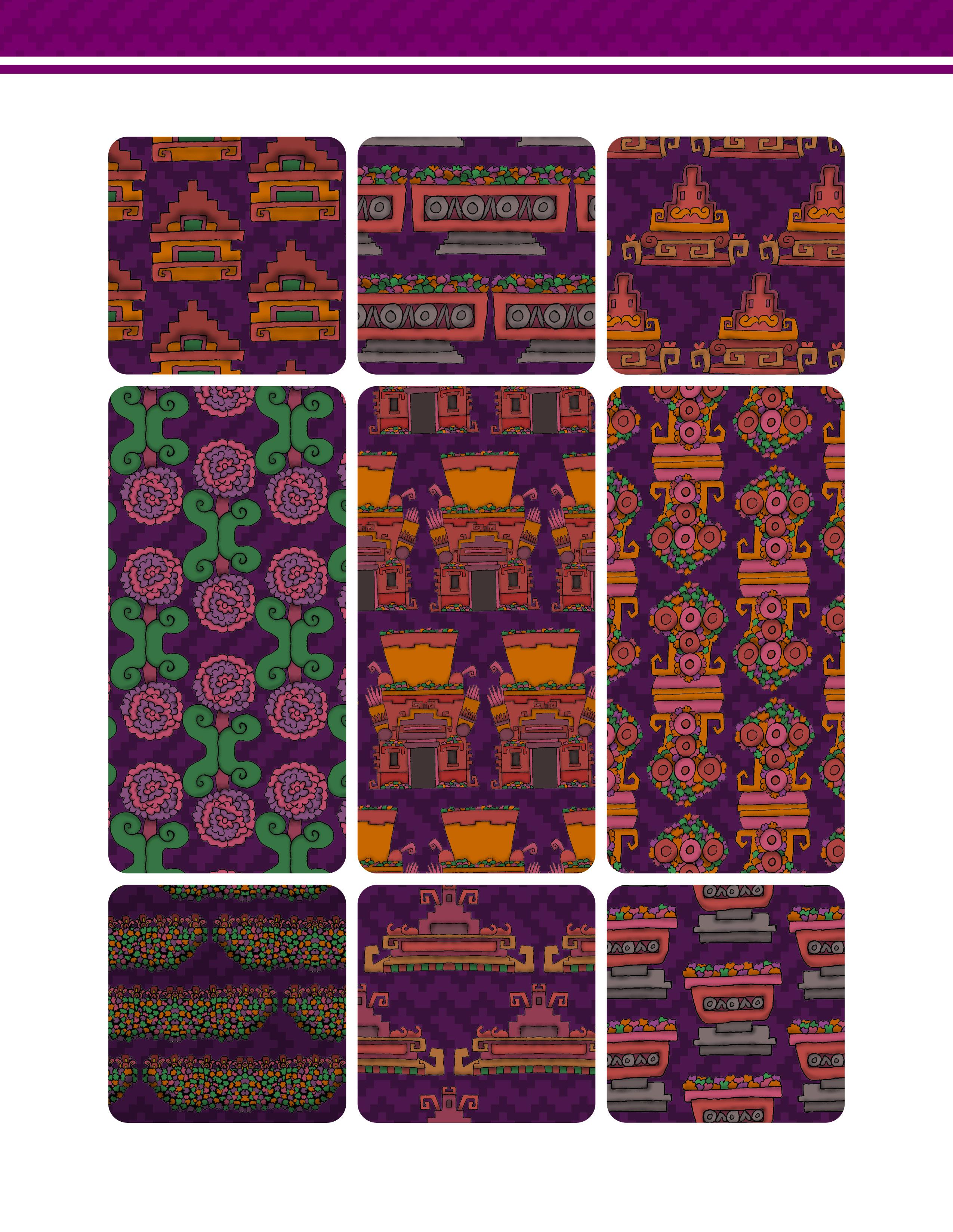 Es un trabajo que presenta una vasta colección de patrones y diseños inspirados en la herencia gráfica y las artes de las culturas prehispánicas de México. Este libro ofrece una reinterpretación moderna de aquella belleza antigua, en forma de patrones y diseños extraídos meticulosamente de códices antiguos, arquitectura monumental, esculturas y otros artefactos arqueológicos. Los patrones están organizados de manera que tanto artistas, diseñadores gráficos, artesanos y aficionados a la cultura mexicana pueden encontrar inspiración y utilidad en ellos.