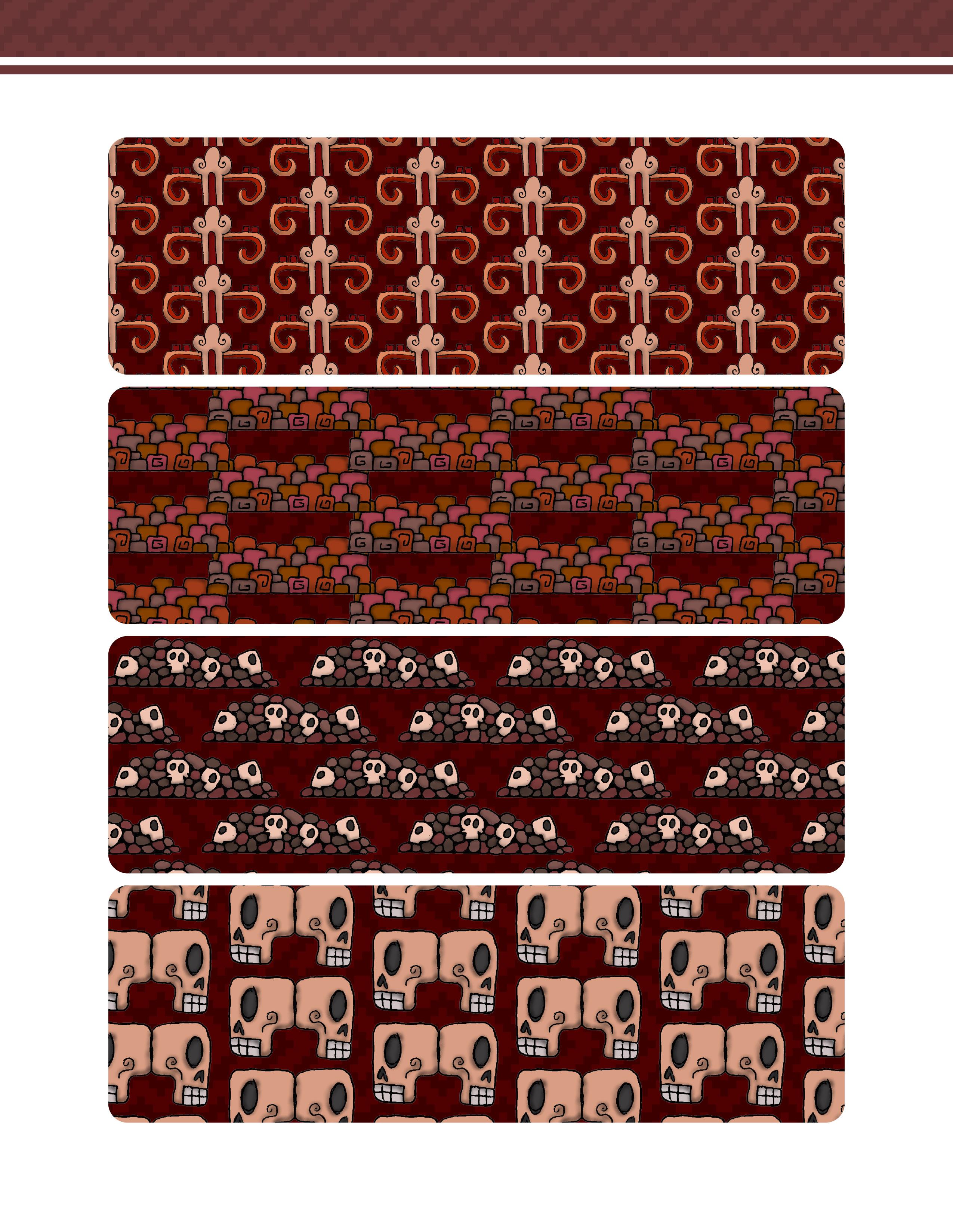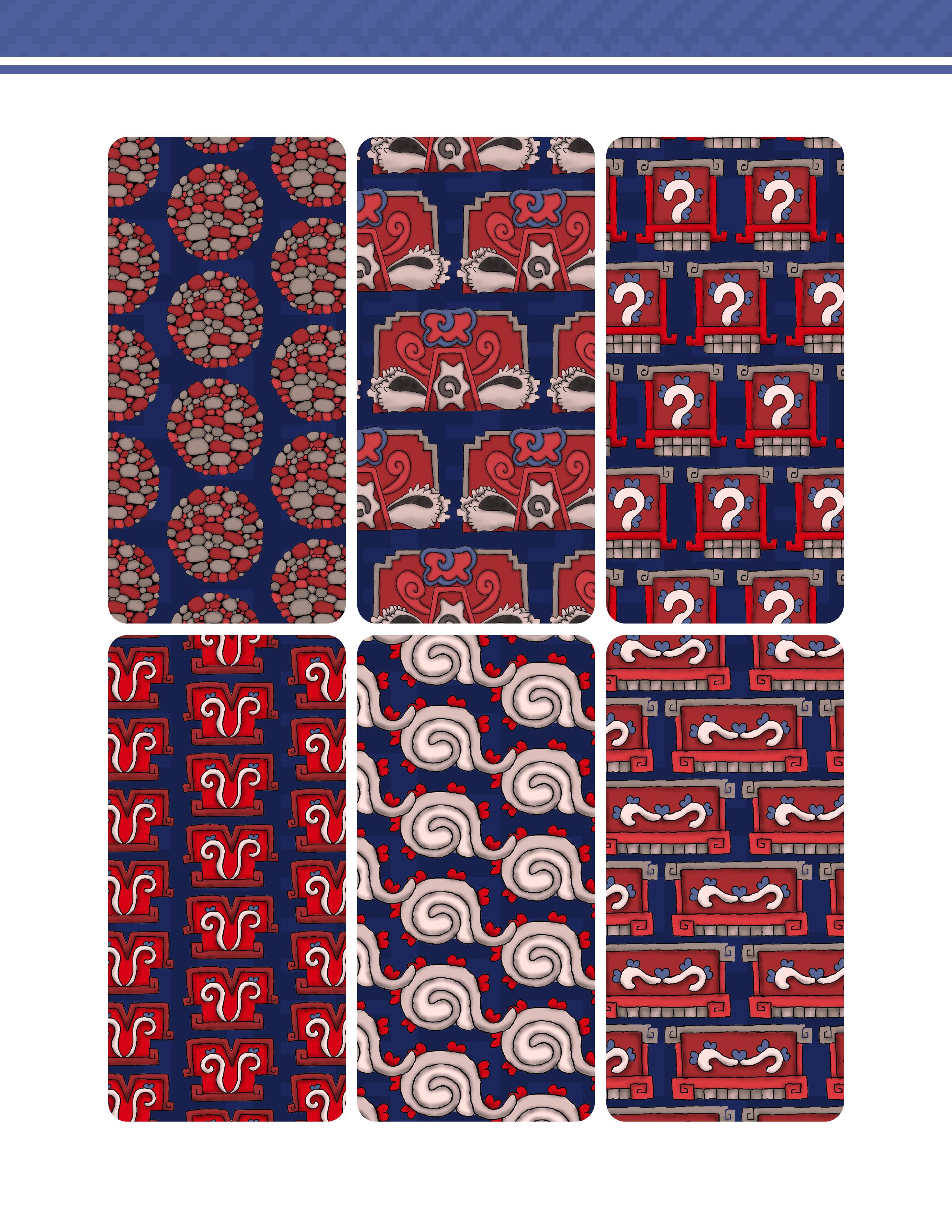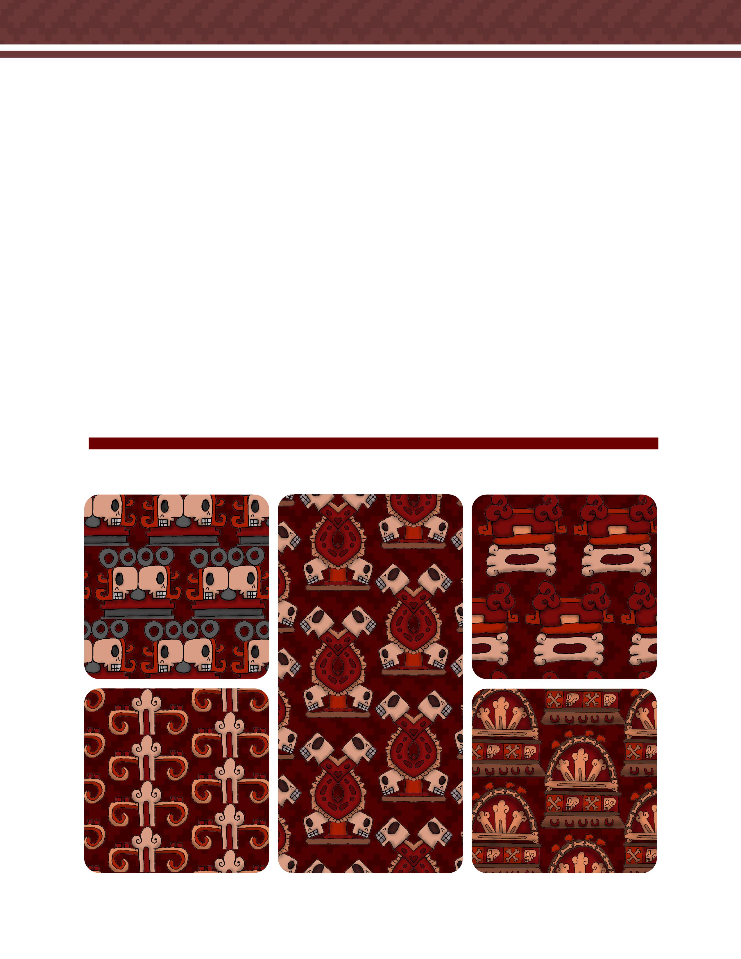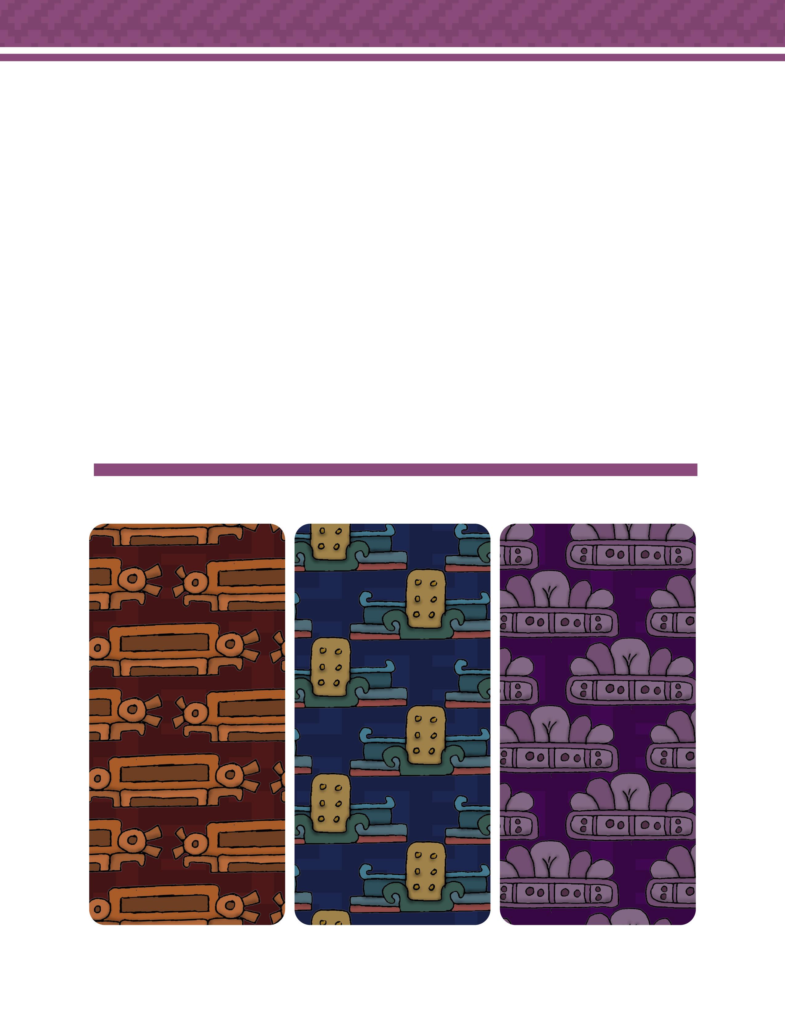 Es un trabajo que presenta una vasta colección de patrones y diseños inspirados en la herencia gráfica y las artes de las culturas prehispánicas de México. Este libro ofrece una reinterpretación moderna de aquella belleza antigua, en forma de patrones y diseños extraídos meticulosamente de códices antiguos, arquitectura monumental, esculturas y otros artefactos arqueológicos. Los patrones están organizados de manera que tanto artistas, diseñadores gráficos, artesanos y aficionados a la cultura mexicana pueden encontrar inspiración y utilidad en ellos.