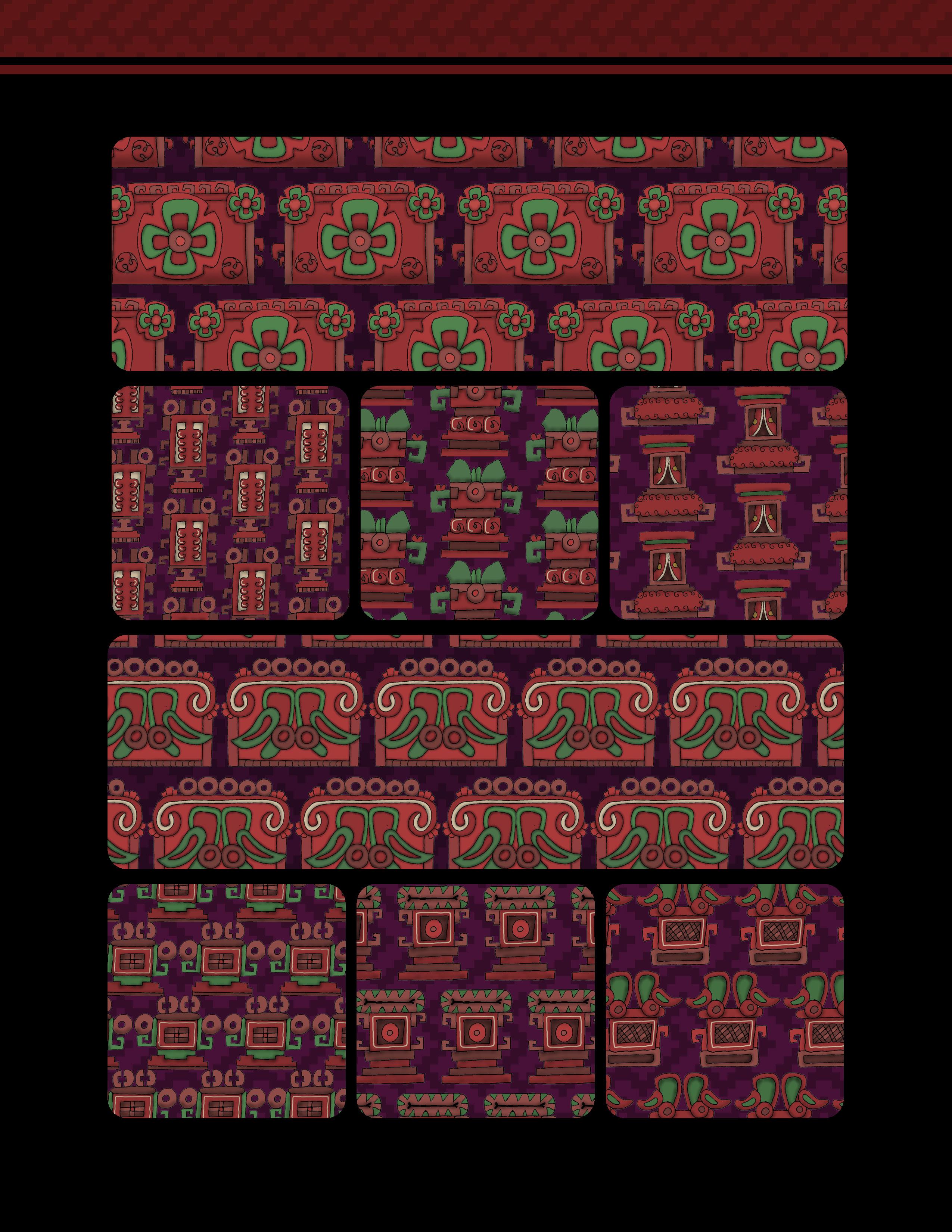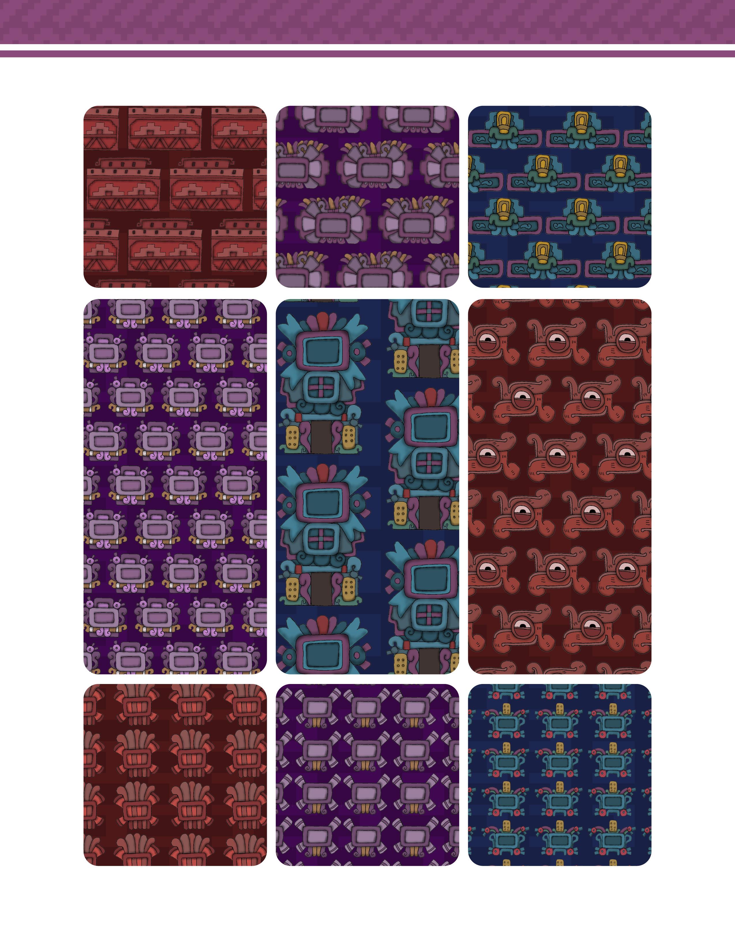 Mi intención es honrar y revitalizar esta rica gráfica prehispanica, integrándolos en un compendio que no solo sirva como una fuente de inspiración artística, sino también como una ventana hacia aspectos menos conocidos de las civilizaciones prehispánicas. Cada patrón y ornamentacion aquí presentado, es una reinterpretacion mia de la grafica y arte prehispanica, buscando dar un nuevo toque a estos estilos, al mismo tiempo que estan hechos para reflejar las culturas originarias.