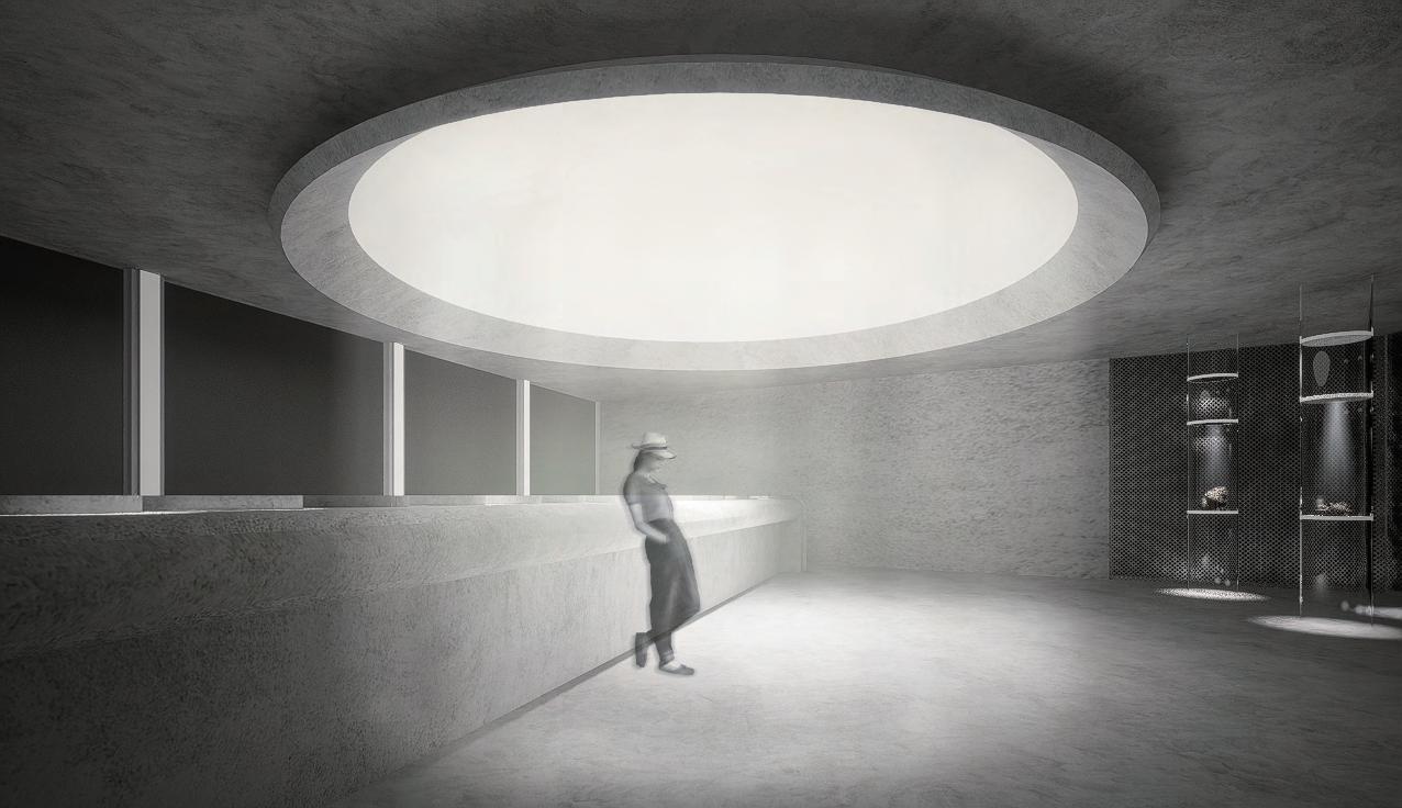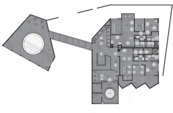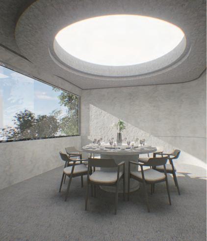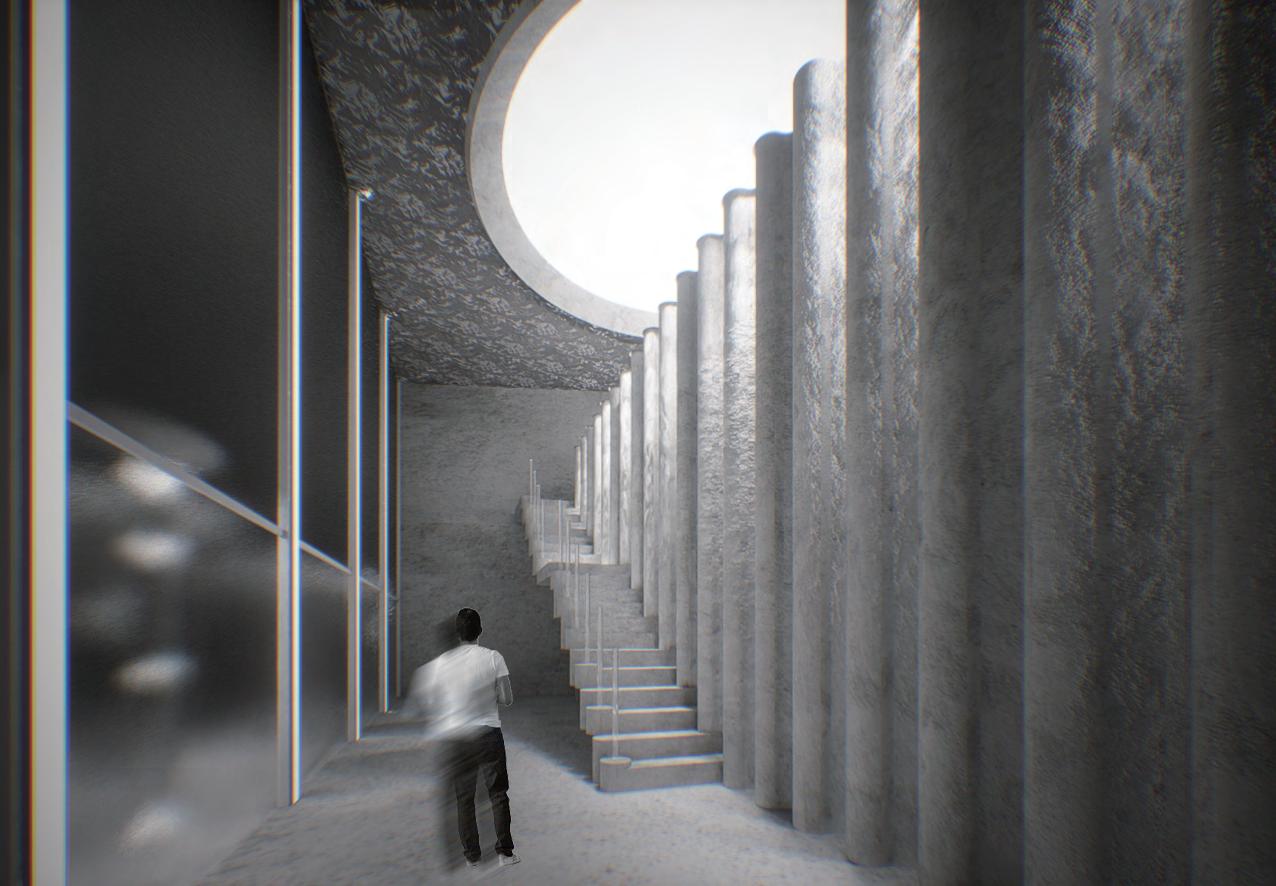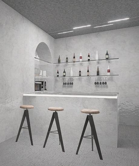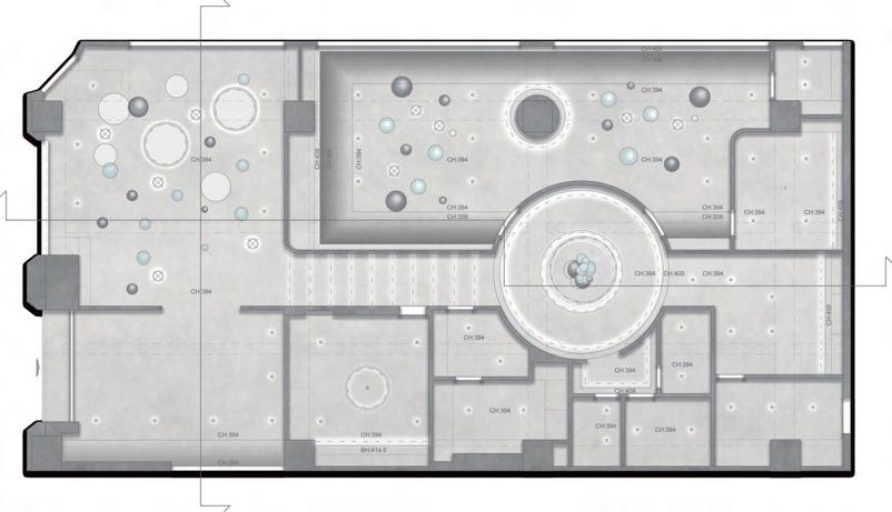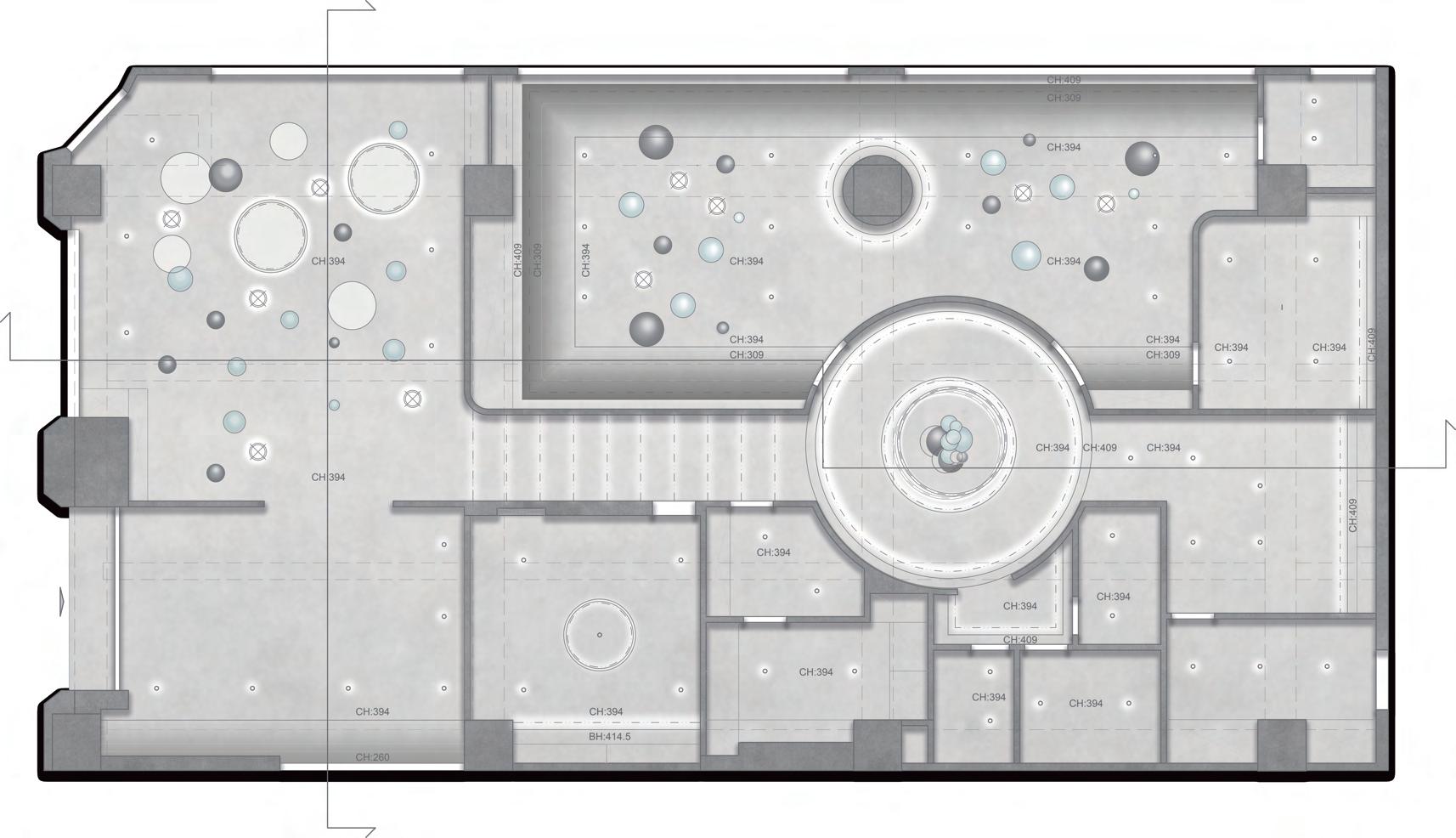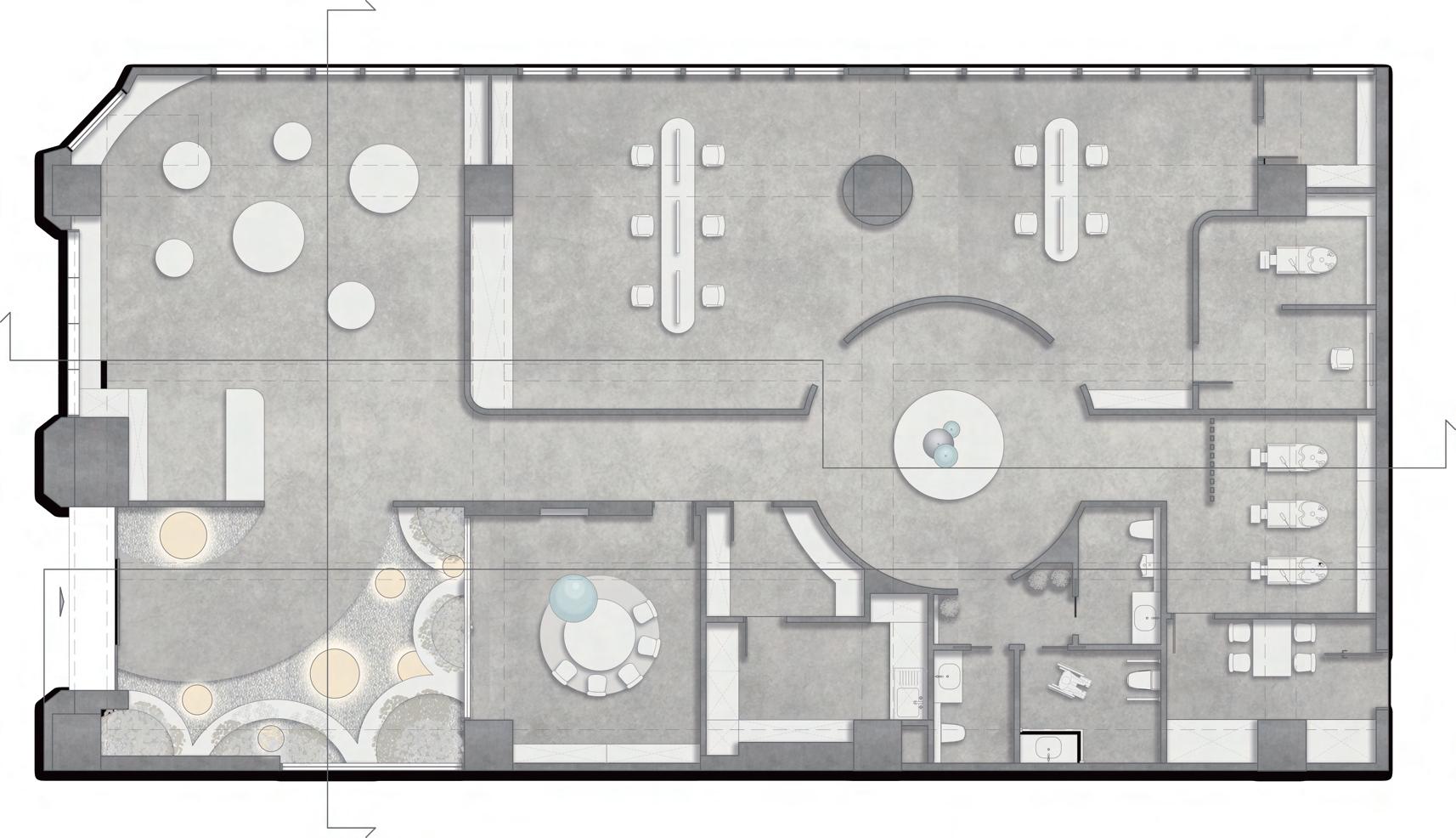 迴廊空間作為空間的中界點,連接了各個區域,包括理髮區 、洗髮區等,因此設計上選擇以圓型做為空間造型,使其成 為空間焦點,也使整體動線變得更流暢。