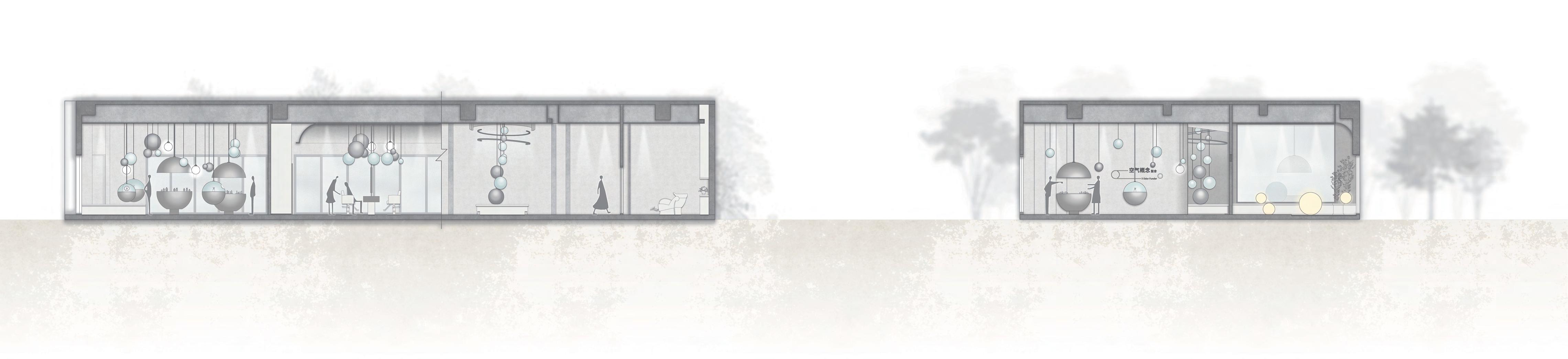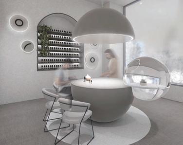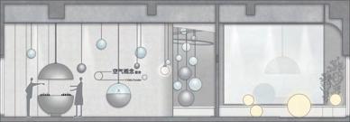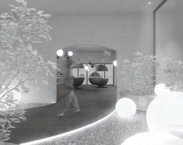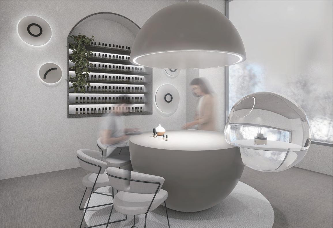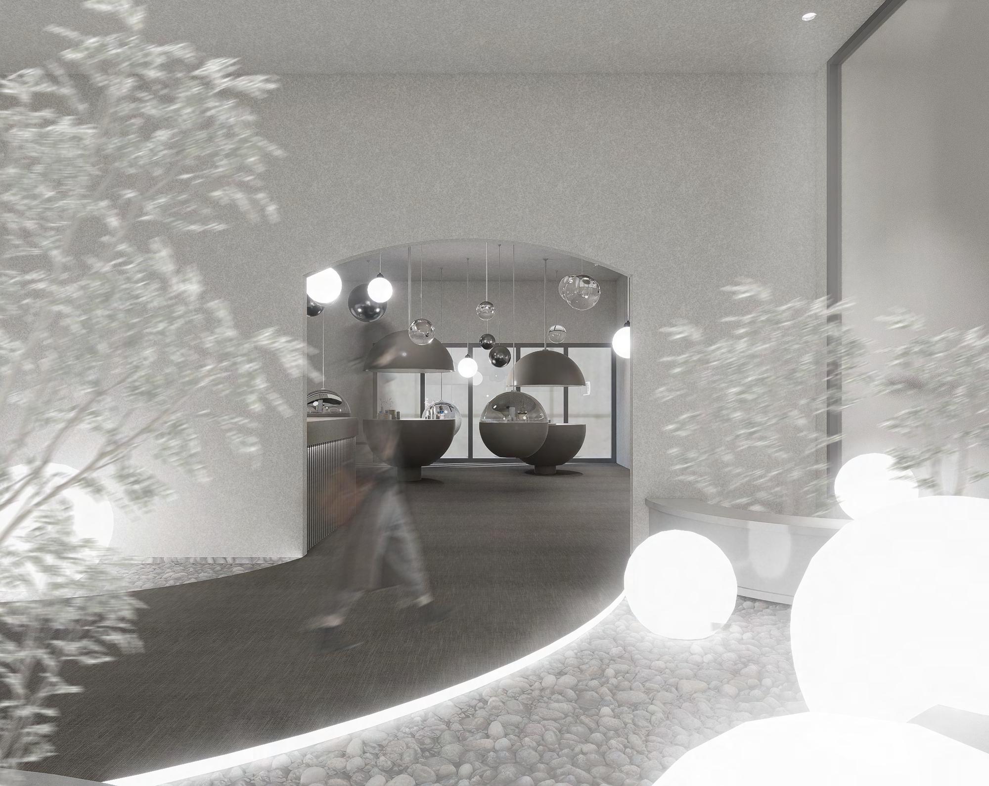 入口處的球型燈不僅是作為裝飾,同時也揭示了空間中不只 帶來視覺的體驗,也有氣味分子的存在。
