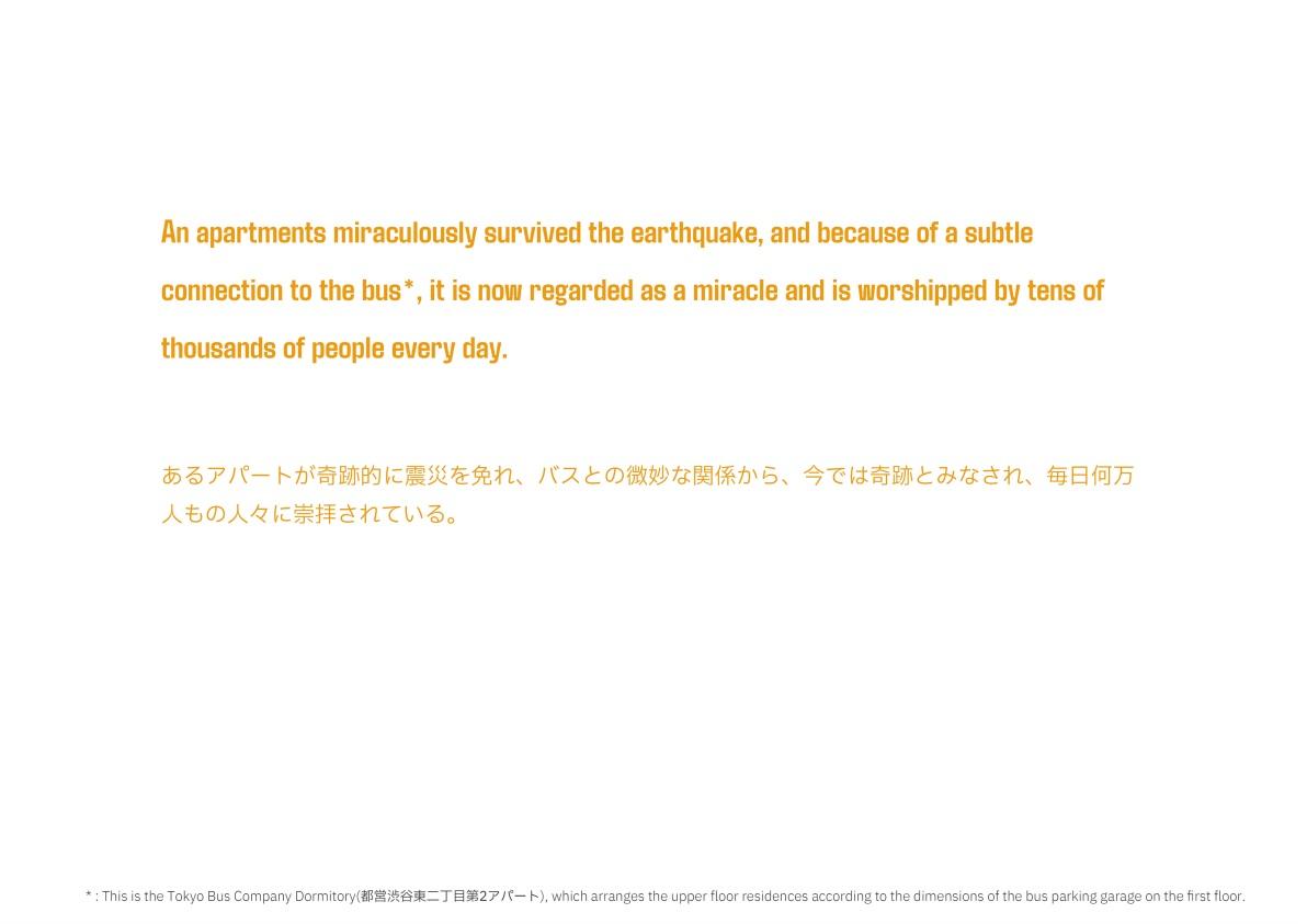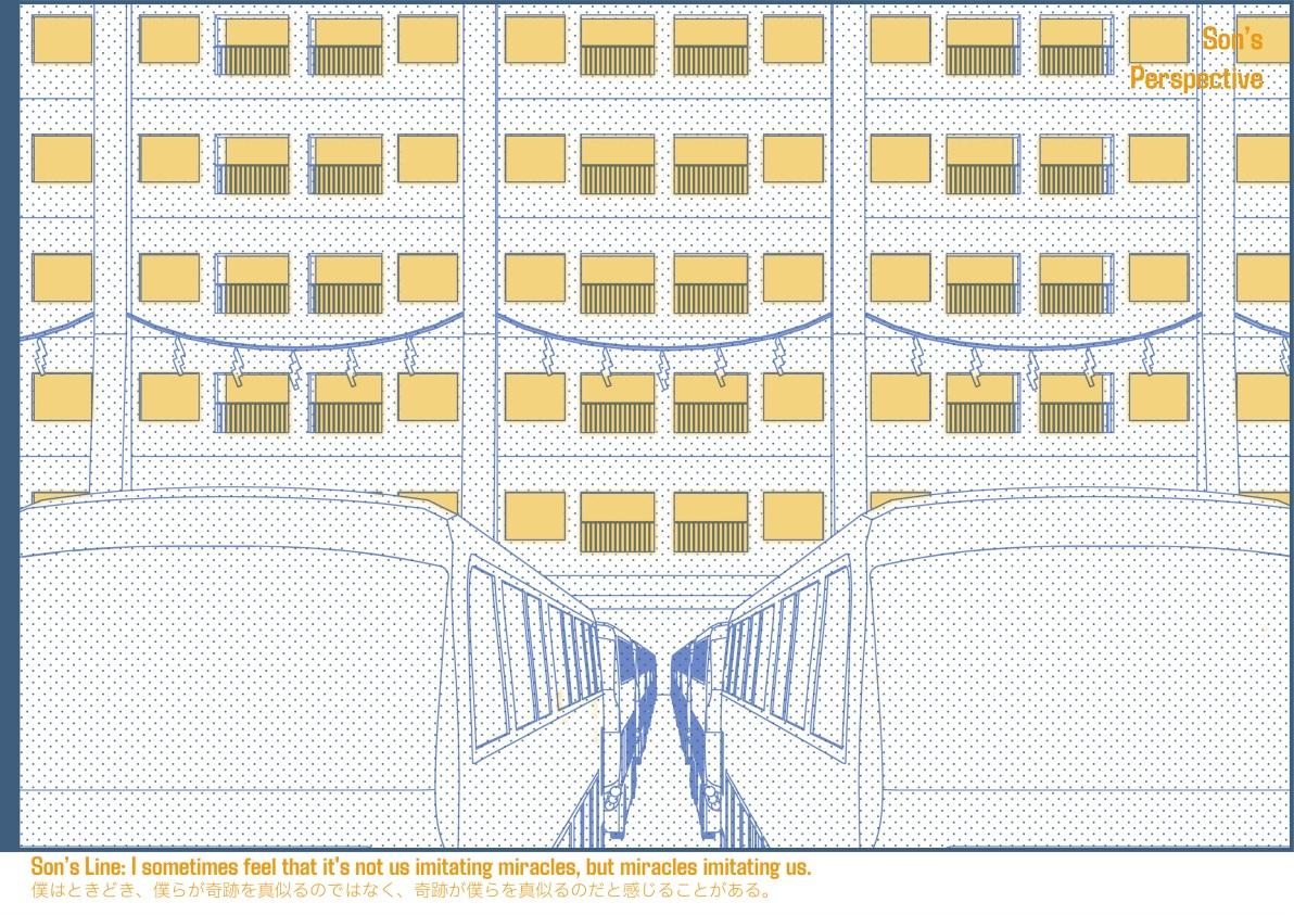 Placing an ordinary Tokyo residence inside an self-driving double-decker bus, I use the narrative structure of classic Japanese cinema to imagine the future of Tokyo. Through this setup, I aim to explore the duality of our perception of the urban—a kind of "Rashomon" effect. This is not a prediction of the future, nor a solution, but rather an emotional projection.