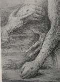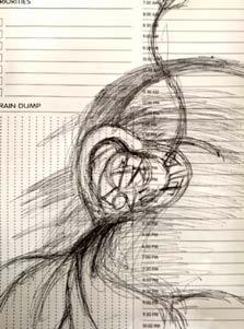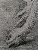 耶穌丁痕手的想像:透過 Henry Morre 的素描稿,想像洞在手上承受的線條。