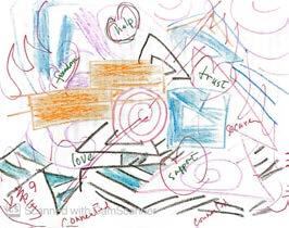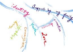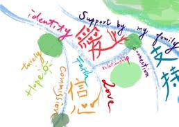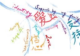 然後,在字中找到空隙,將愛填入這些空隙中,也可以代表著關係中的和解和信任。 當你再次有機會對著鏡子看自己的時候,想像自己回到孩童時期,話語、思維和意念都像孩子 一樣純真。即使長大成人,也要保留孩子的精彩。