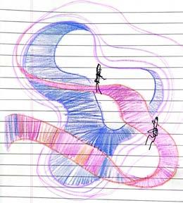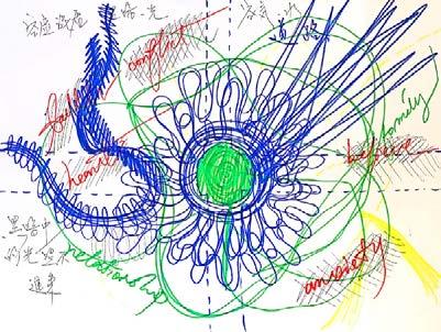 在神為中心之下,神的話如光芒,是永不止息的運行在這個世界上,讓我們選擇那代表神的光 的色筆,從白紙上十字架摺痕的正中心出發,想像著神的靈運行般的,讓筆不離紙的一筆畫到 底,我們所描繪出的線條看起來是如何呢?或許像波浪、旋渦或光芒般的發散,這些筆走過的 足跡,是否就像神的話在你我的生命中照亮的痕跡?