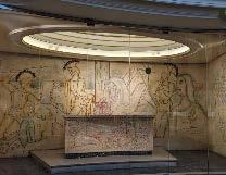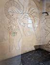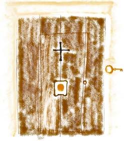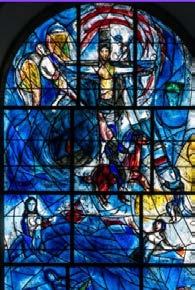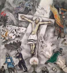 這壁畫描繪了耶穌從生到死的過程.十架耶穌的腳下有玫瑰,代表以愛面對死 神、暴力、權勢、謊言及背叛.黑色的太陽令人恐懼,仰頭問天的,禱告以對 的,流淚哀傷環繞四周的,憤怒,無奈的.旁邊卻是一隊天軍吟詩吹號舞蹈著, 還有撚骰子的羅馬士兵,天使聞著花香。詩篇說哀傷變歡喜即如此吧!