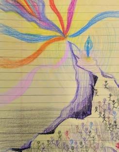 在活動的過程中,在「藝術的靈修的情境」是我最受感動的地方.每次的活動總是能讓我深刻省視 內心.有時候看看別人的創作,也能引發心中的共鳴或不同的思維.每個人對自我靈性的感知深淺 不一,每一個圖片,每一個筆觸,每一次不同的經文對每個人的感受不同,所以創作的作品也有不 同的感知.我其實很喜歡看其他人創作的作品. 只可惜分享的作品不多。(學員三)