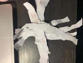 畫著畫著,發現這張紙的重量越來越重,就如同罪的毒鉤使我們更佳的絕望,然而,有一位神, 誠然擔當我們的罪,受難夜的前夕,耶穌擘開餅說:「這是我的身體,為你們捨的···」接 著也拿起杯說:「這杯是用我的血所立的新約,你們每逢喝的時候,要如此行,為的是記念我。」 耶穌獻上自己當作羔羊,祂的身體為我們破碎,祂的寶血為我們而流,那滿滿的罪狀都因著祂 一筆勾銷了!因此讓我們將那張紙撕碎吧,撕碎的過程,去更深的體會這些碎片就如同耶穌的 身體,為你我捨的···縱然痛,祂因著愛我們,甘心為著你我的罪而死的。