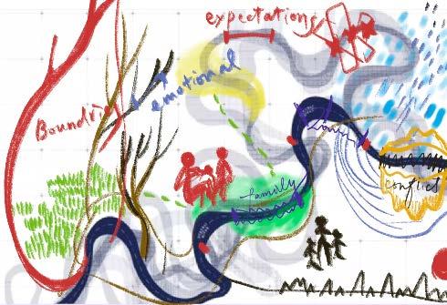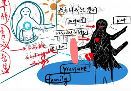 有一些很小,但卻是散落一地,很難收拾跟掃乾淨。有的堆很高,快要全部崩毀,有一些就是選 擇放著一堆,因為目前可能衝擊力還沒有很強。讓我們一起挖掘與看見不同形狀與大小石頭,透 過文字、色彩或是顏色把它們具象化,也許等到有一天時間到了,我們就可以很清楚地撿起來, 將它們做最好的處置。