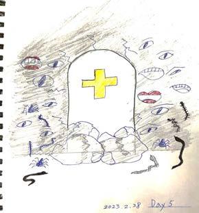 在大齋期間,這藝術靈修活動每日分別以基督教歸心祈禱、經文及以繪畫創作探索個人內在情境以 回應經文,確實充滿令人驚豔的自我察覺. 我從自己及參加成員的作品分享中看到個人靈魂的開 展,就像進入夢境裡的奇異世界.