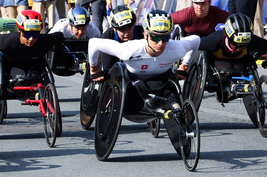 wheelchair divisions at $50,000 a piece. This year, Marcel Hug and Eden RainbowCooper will defend their titles, going up against perennial podium finishers Daniel Romanchuk (two-time winner) and Susannah Scaroni (2023 champion), as well as Paralympic champion and world-record holder Catherine Debrunner of Switzerland.
