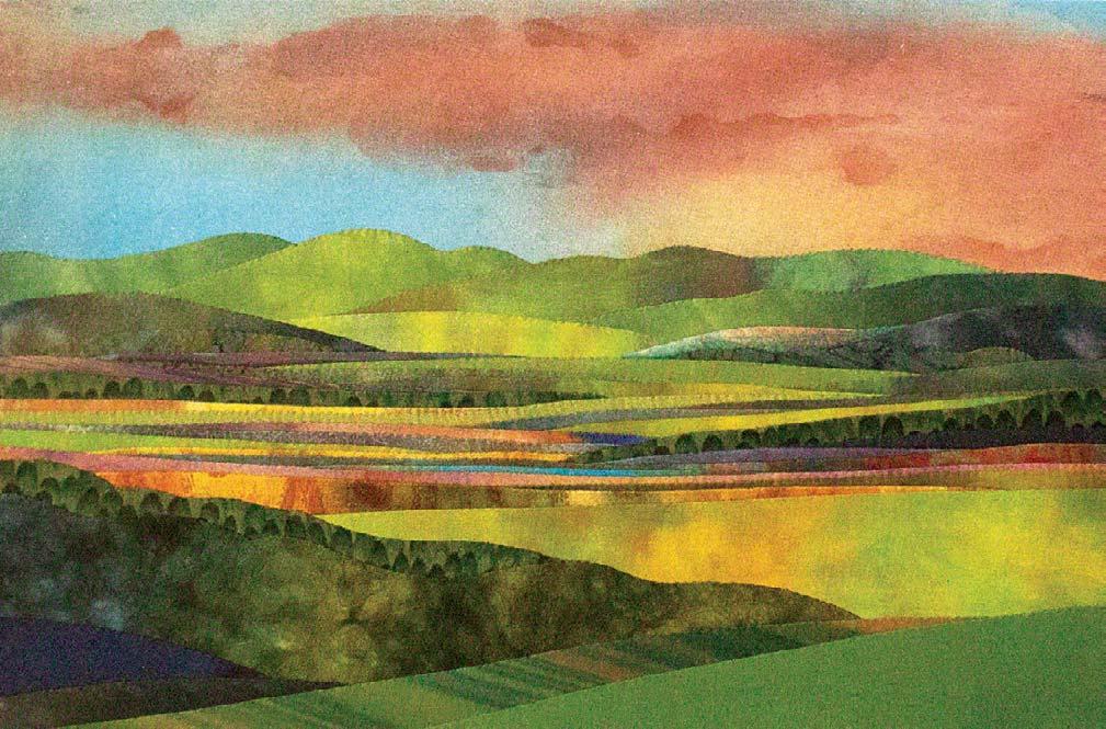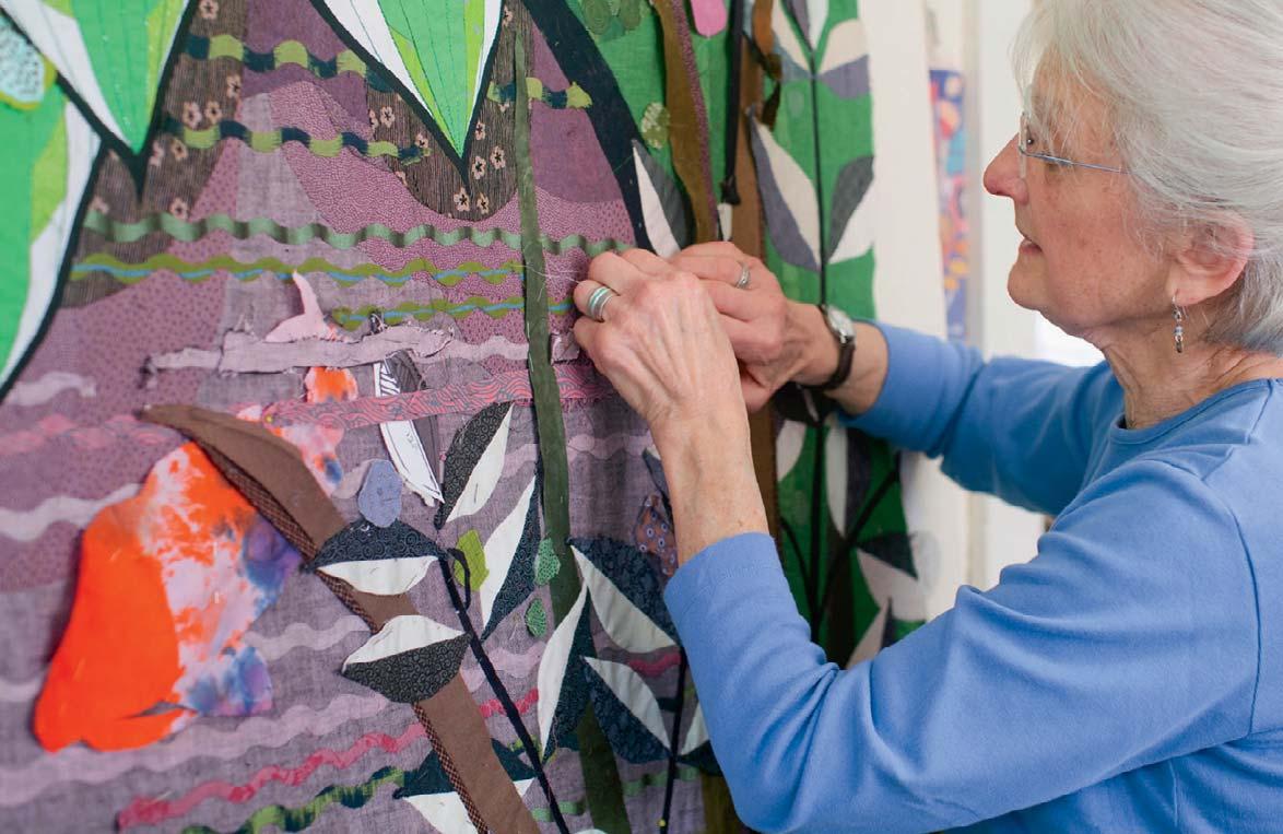 Maine quilt and appliqué artist Jo Diggs brings a painter’s eye to her colorful and intricate fabric landscapes. by Annie Graves