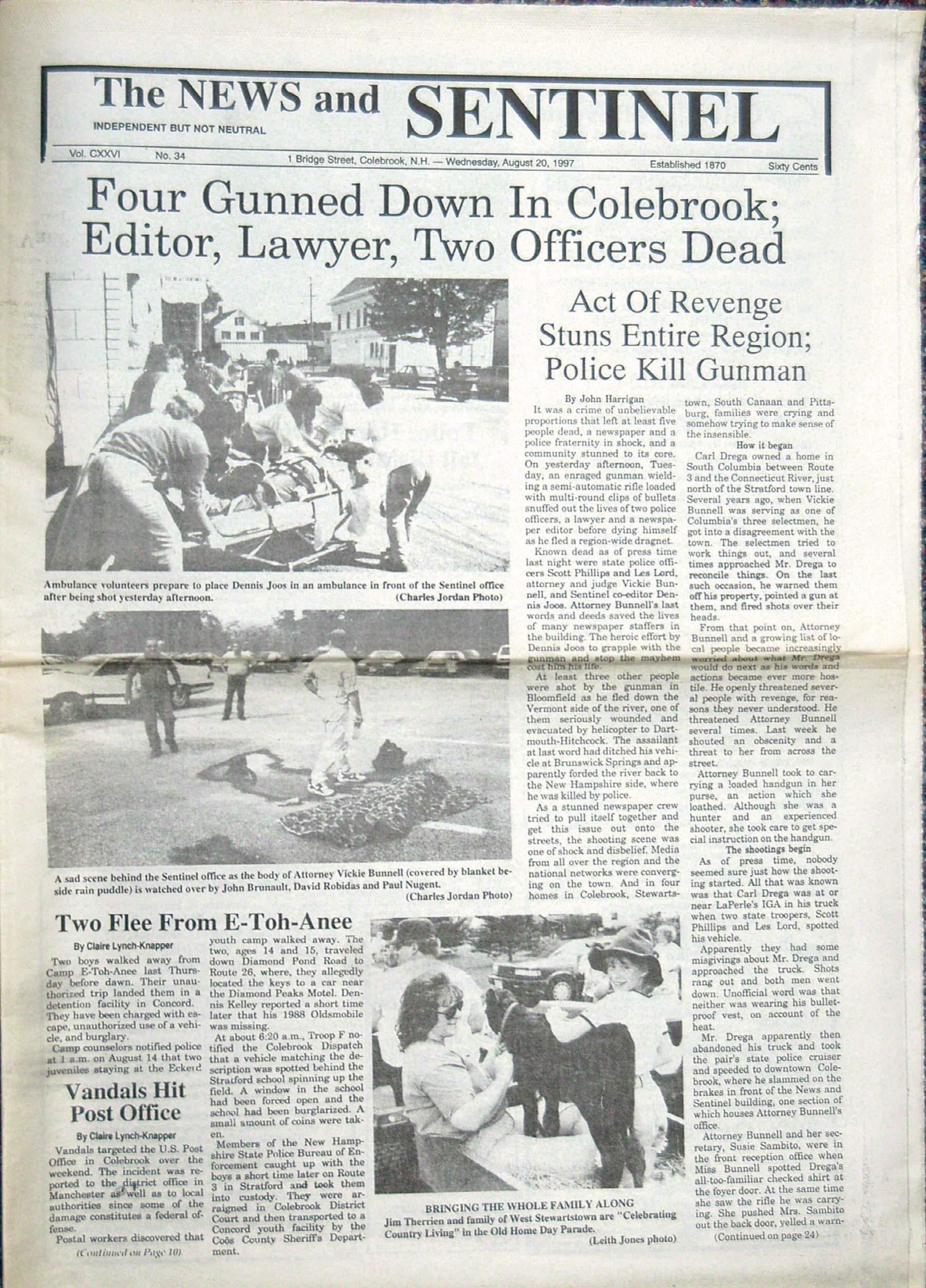 In shock after a horrific quadruple murder that had just claimed their editor and close friends, the staff of a small-town New Hampshire weekly knew they had only hours to publish. by Richard Adams Carey