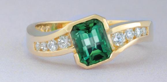 Scorpian Star is tsavorite, a piercing, vibrant green-colored gem. It is the eyes of the jungle. The eyes of the night. When the sun goes down, these gems are electric. Brighter than emerald, more brilliant than emerald, more durable than emerald too. Rare! Rare! Rare! First discovered in East Africa in 1967.One of the world’s top seven rarest gems and still one-fifth the cost of emerald. 14K white gold.