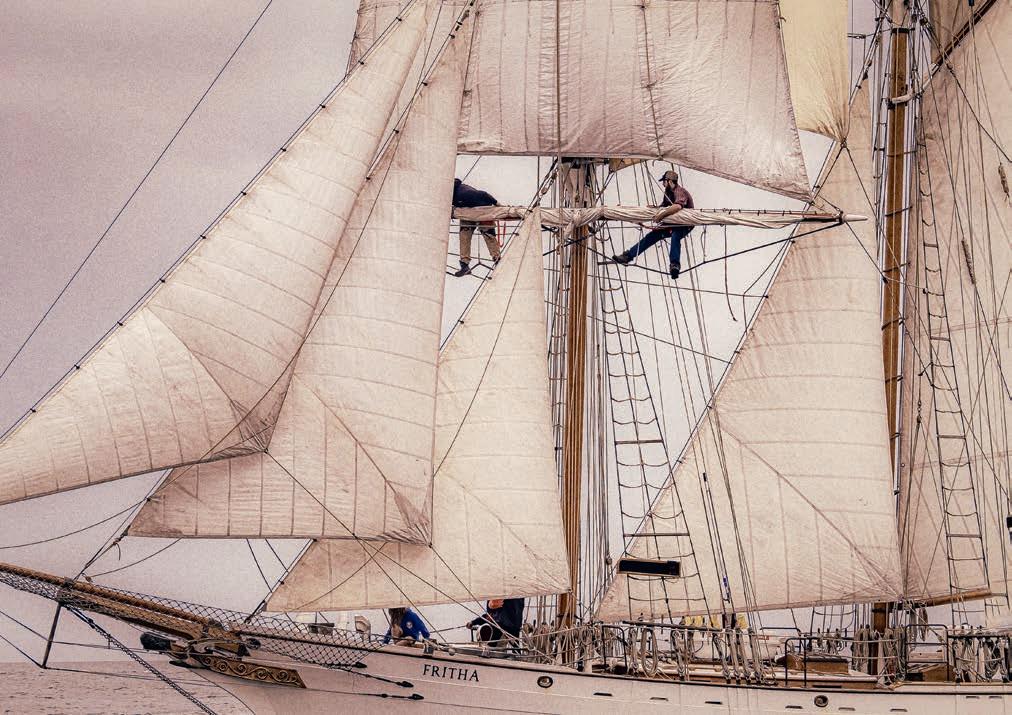 Wear this bracelet and enter a dreamy summer memory. There’s ocean and sky, a full sail gliding between islands, billowing clouds, and an evening gathering of friends and family. It’s summer by the sea.