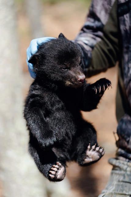 about 80 percent of the state’s bear habitat is on private land. Where Maine has fewer than 50 people per square mile, Connecticut has almost 750, making it the fourth most densely populated state. This not only complicates the issue of hunting but also puts stress on wildlife—including bears. While checking on and changing the collars of hibernating females in the first three months of 2024, the researchers found that 10 of them had borne no cubs this year. Though Hawley says they don’t know why this happened, it’s not unreasonable to think that stress could be a factor. Certainly, the biologists feel it: Much of what they do to study and protect bears gets noticed. Sometimes when they try to move a bear from an urban area, a crowd will gather nearby and start taking videos with their cellphones.