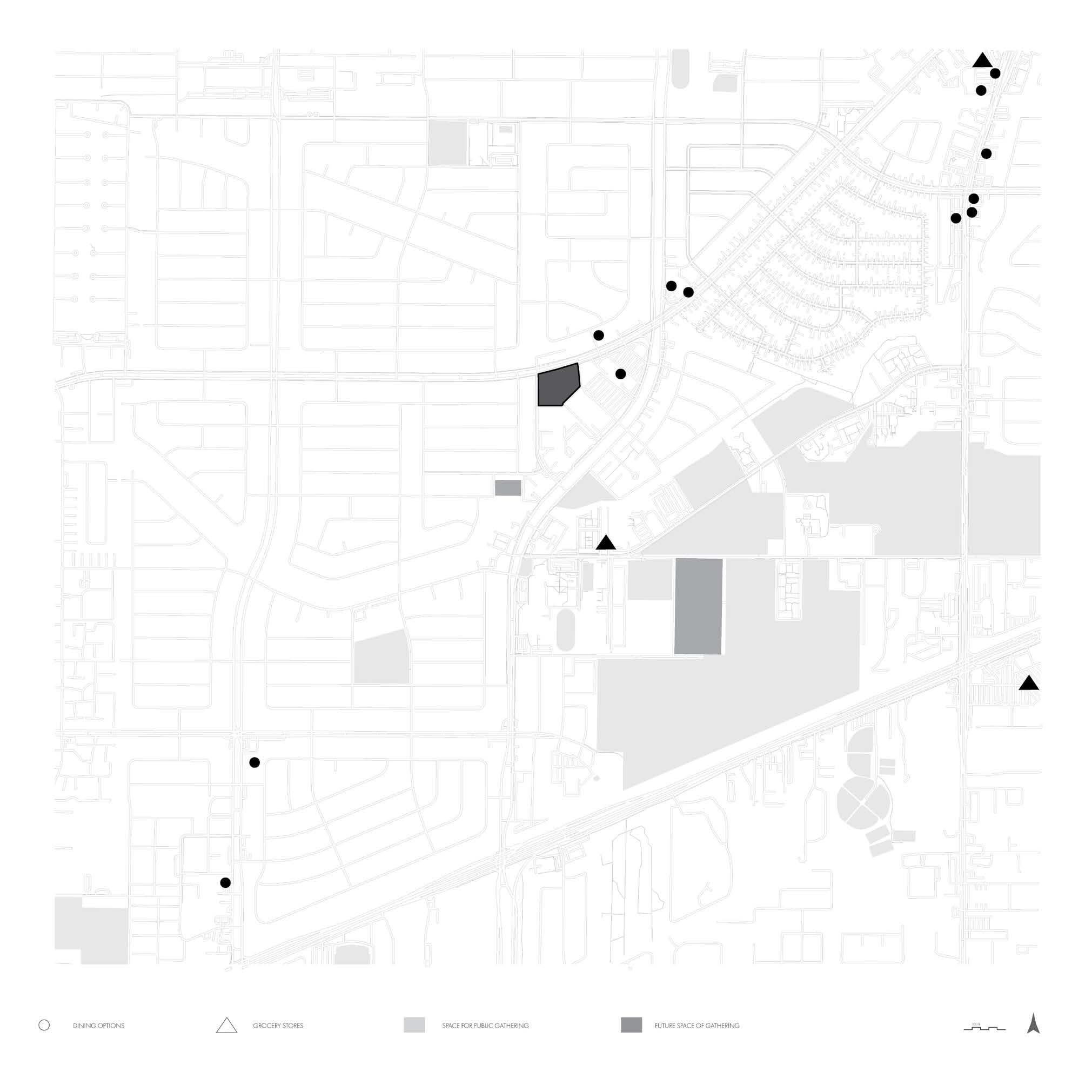 While Ira Berne’s development of Westbury Square was successful in bringing the communities together by providing a series of courtyards for small businesses to grow, the opening of the Galleria in 1970 led to a decline in popularity. This shift left the community with a void in its central area and a loss of identity, leaving questions of what the center of the neighborhood wants to be. The Food Culture Incubator aims to revitalize the site, acting as a civic center and addressing a lack of food variety and availability in the area.