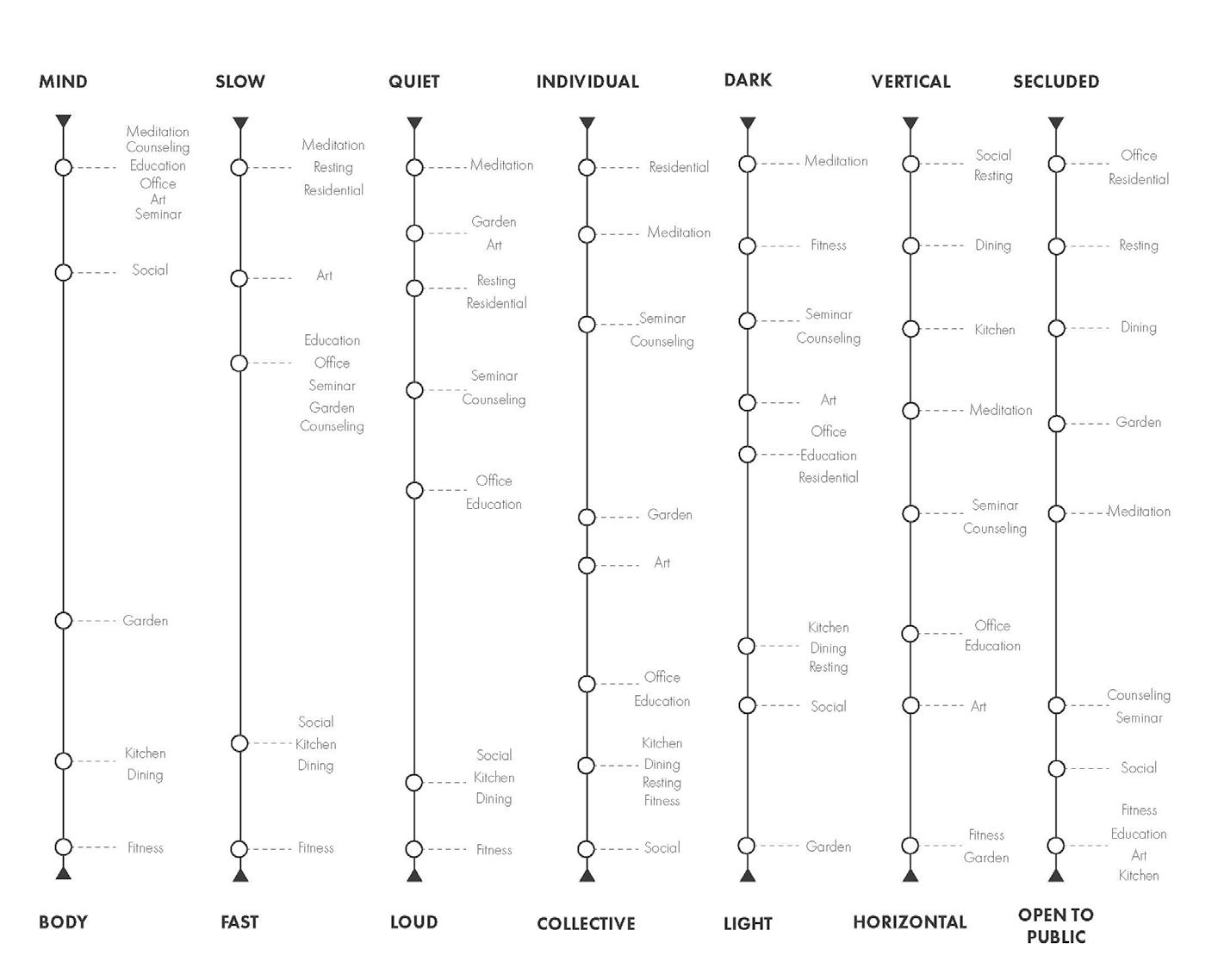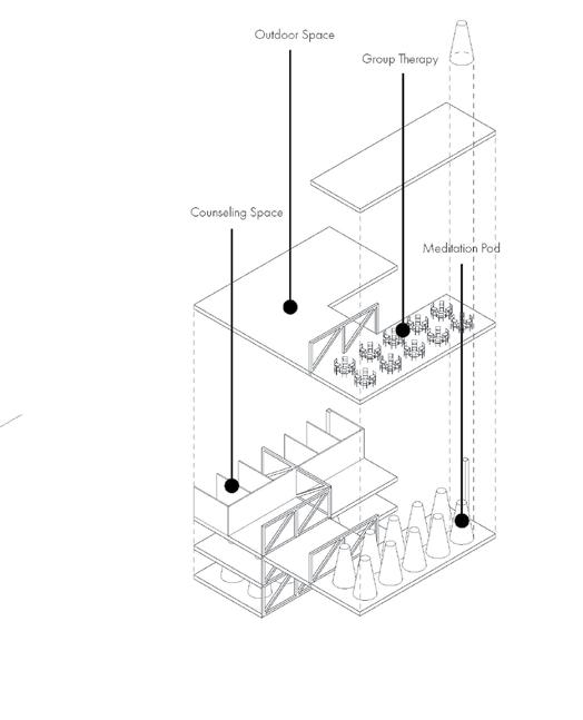 The outbreak of COVID-19 caused an abrupt increase in mental health cases. As mental health becomes a more normalized phenomenon, it is important to consider how to destigmatize the situation and integrate mental health related programs into community spaces. This project is sited in Kips Bay for its reputation of having one of the largest healthcare centers in the country. Building upon the premise that public spaces and parks have a positive impact on individuals’ holistic health. The Community Wellness Tower rethinks mental health wellness to be a holistic process that includes physical, mental, and communal aspects.