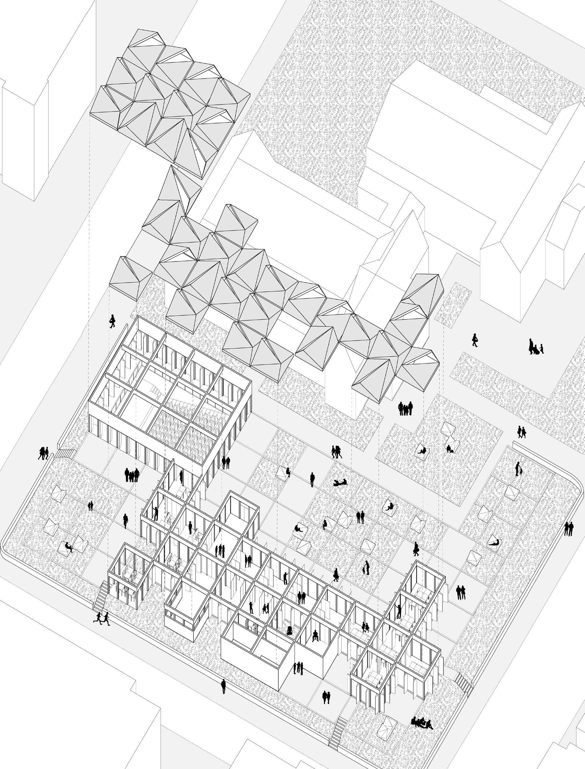 This project aims to create an art space that is extroverted which is unlike a traditional closed off art gallery for people to join and engage. As I was exploring Charlottesville, the lack of spaces for people to have interactions with each other came to my notice. While the downtown mall is the most crowded space of gathering, it is filled with retail instead of public space and the space does not encourage people to meet each other, so I chose the site just one street block north of the mall where confederate general Stonewall Jackson’s statue was recently just taken down as a public gathering space for healing and community bonding.