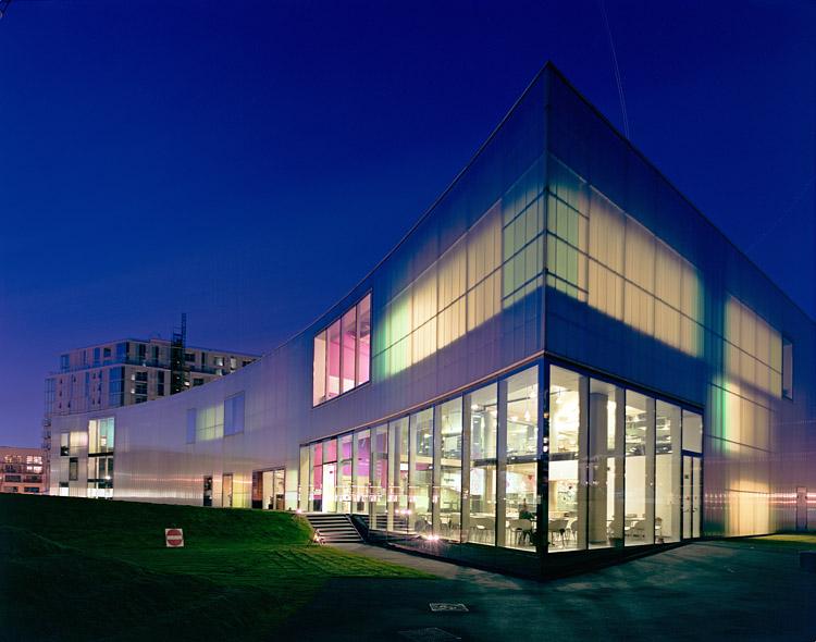 Participation of the talented artist Michael Craig-Martin in the Laban Dance Centre design process elevated the whole project to stunning aesthetic heights. He boldly applied polycarbonate panels on exterior walls of the Laban,