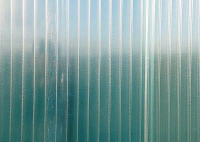 Figure 13. Polycarbonate and glass sheets on west facade. Author’s work traced from a photograph from Mack, Gerhard, Herzog & de Meuron 1997-2001: The Complete