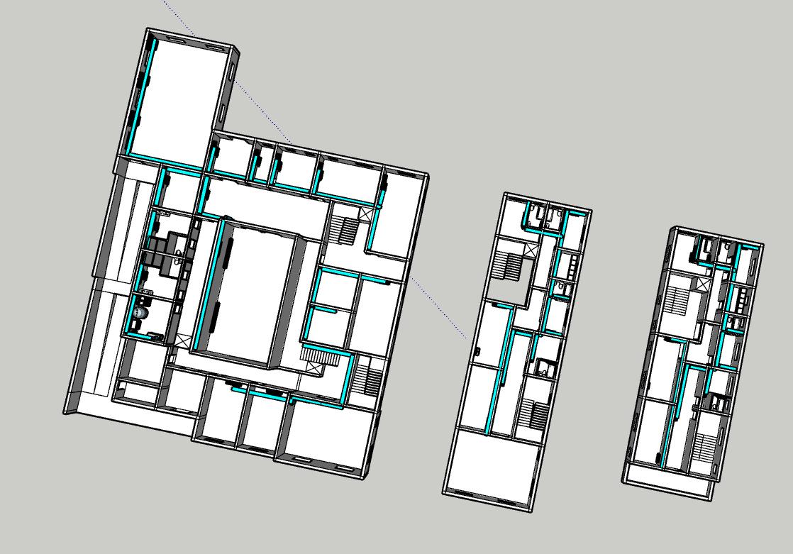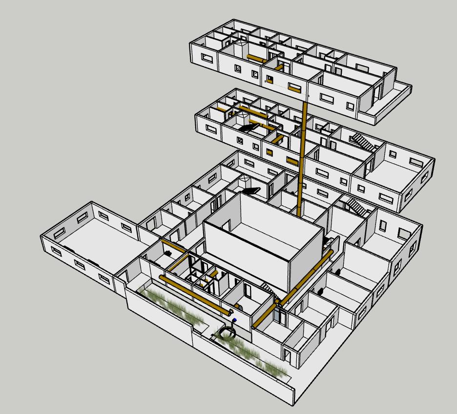 Fig 87.Buildiing model-ground, first and second floor. Author's own work.