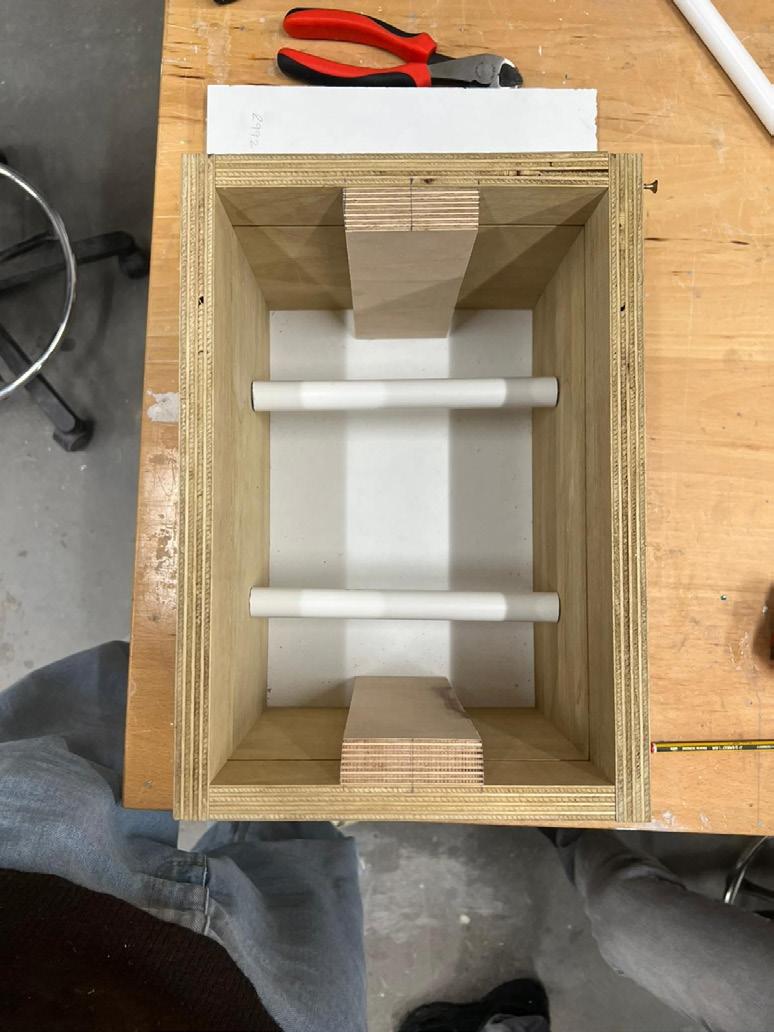 Mold for rammed earth blocks with pipes embeded for future drainage system were made first, then after having the amount of earth-sand-clay propotion tested, ideally 1:5:6 or 1:4:8, materials could be put into the mould to be rammed. When a piece of rammed earth was demolded, it became a very neat squared shape. Eventually, timber, rammed earth and concrete slab were able to be assembled together.