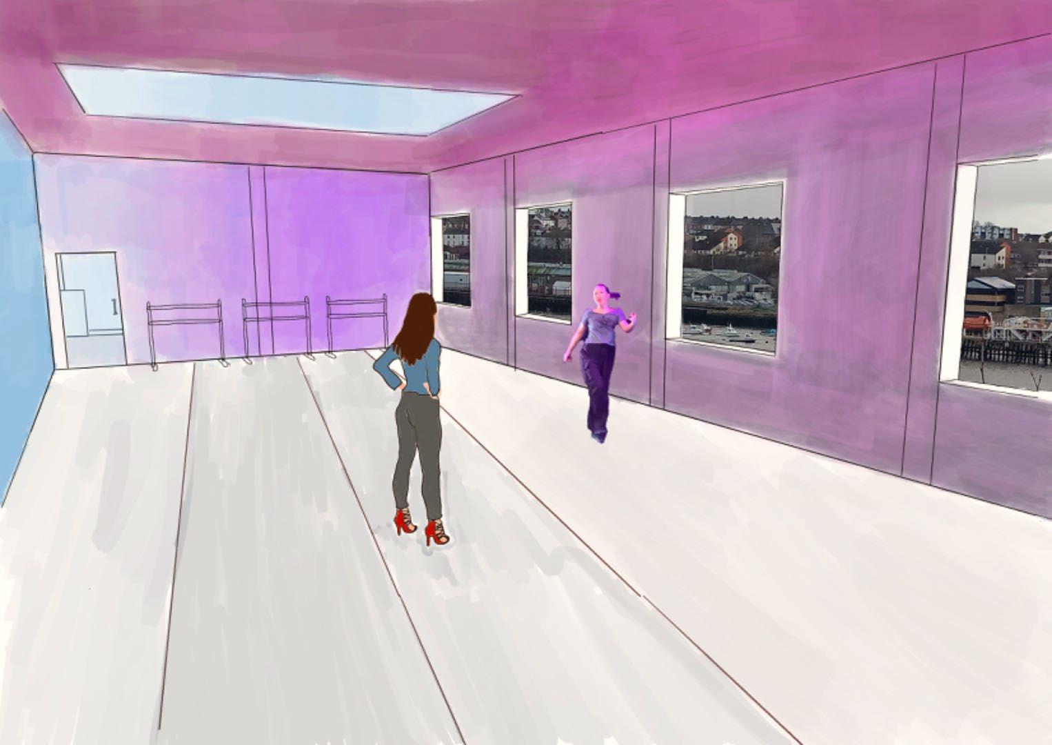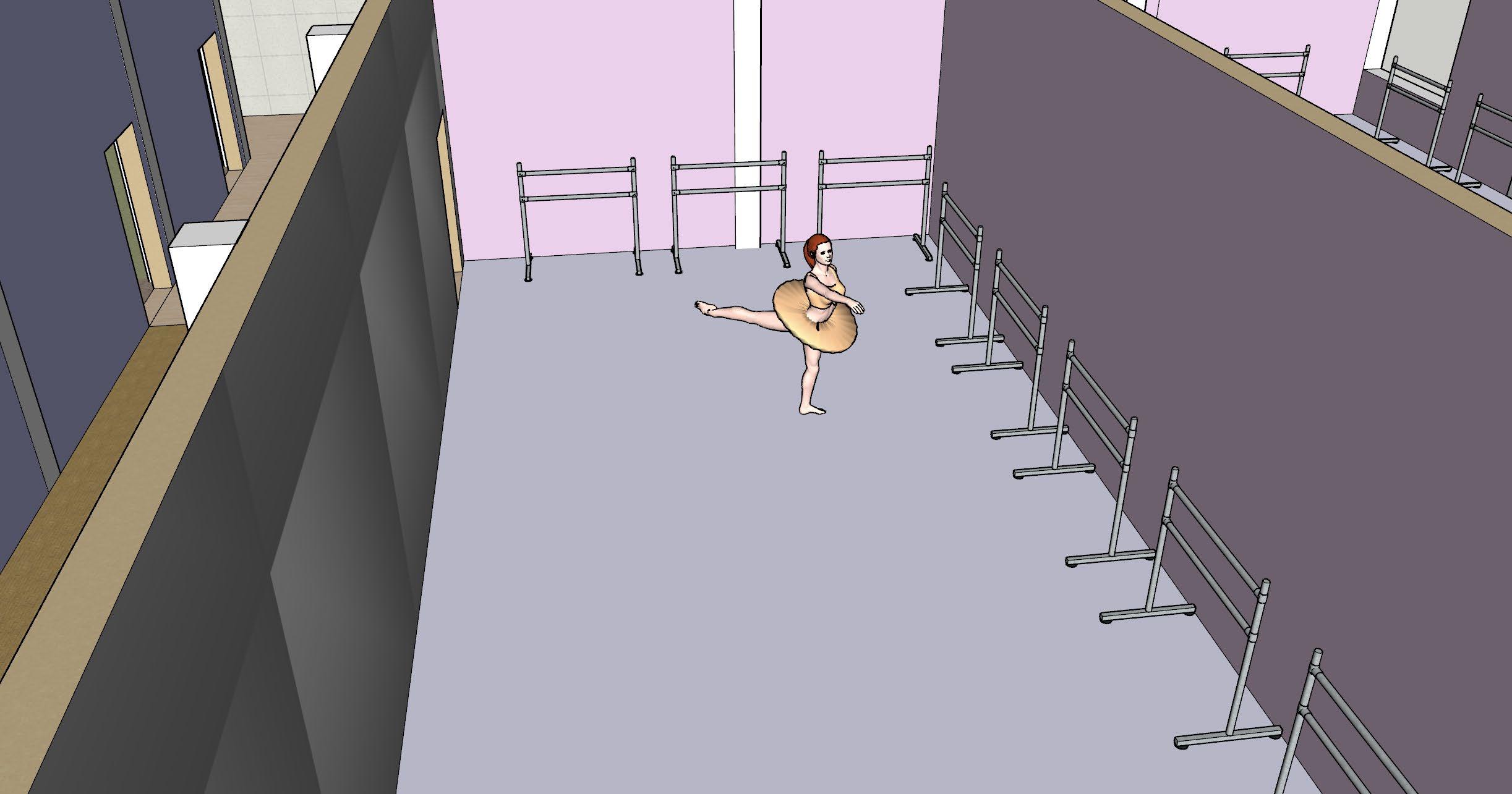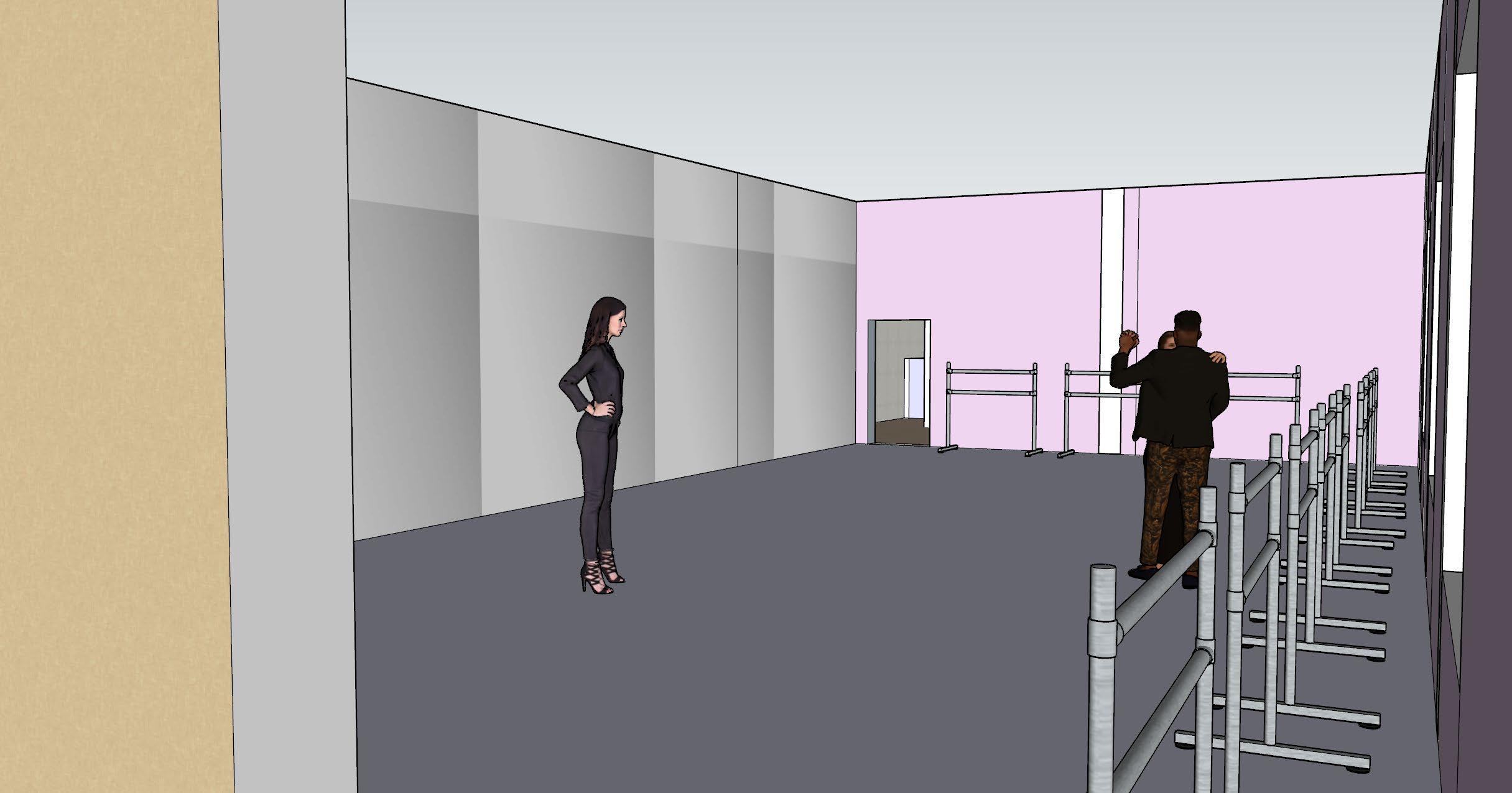 Figure 34. Users Experience Drawing of Dance Studio 2 on Third Floor. Author’s own drawing.