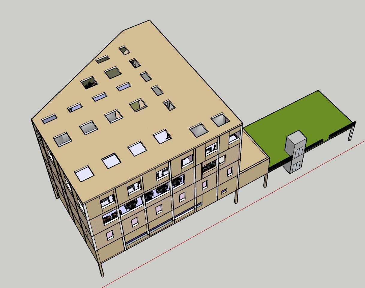 Here’s the last plan of building, our roof with nice skylights for each room on third floor including corridors Used to think about doing green roof with seatings but worried about the glulam timber structures’ endurance capacity.