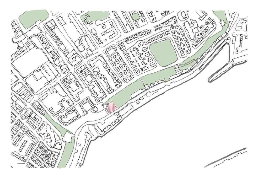 Author’s own drawing traced from Google Earth Website. Google Earth, ‘North Shields Ferry Landing’, Google Earth, 18 March 2022 <https://earth.google.com/web/search/North+Shields+Ferry+Landing,+Ferry+Mews,+北希尔兹 /@55.00743745,-1.44143295,420a,1000d,30y,0h,0t,0r/data=CigiJgokCRjnlPrXhUtAEeCfKuzQfUtAGcEvVvN95vW_IVFH4Wi80Pe_MikKJwolCiExRVQwdWprZ0pZZnMydnlQOHYtWFZrZTlaS0NHUWV1X3cgATo DCgEw> [accessed 15 May 2024]