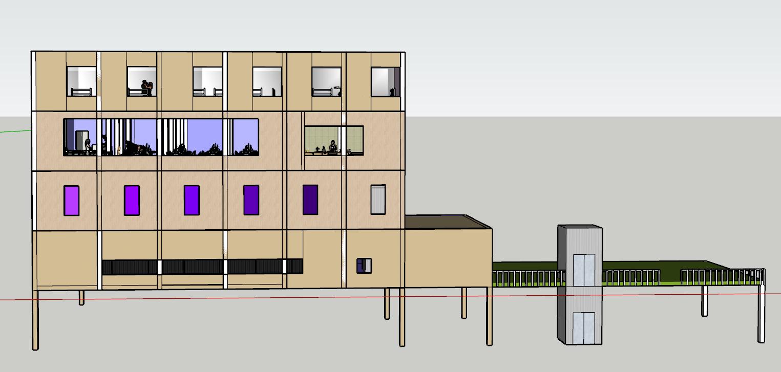 There are vertically attached bird house groups on Front Elevation, which formed part of my technology submission. It was a good idea to let birds have fixed houses in North Shields during their migration here and there and will be good for fostering their next generation.