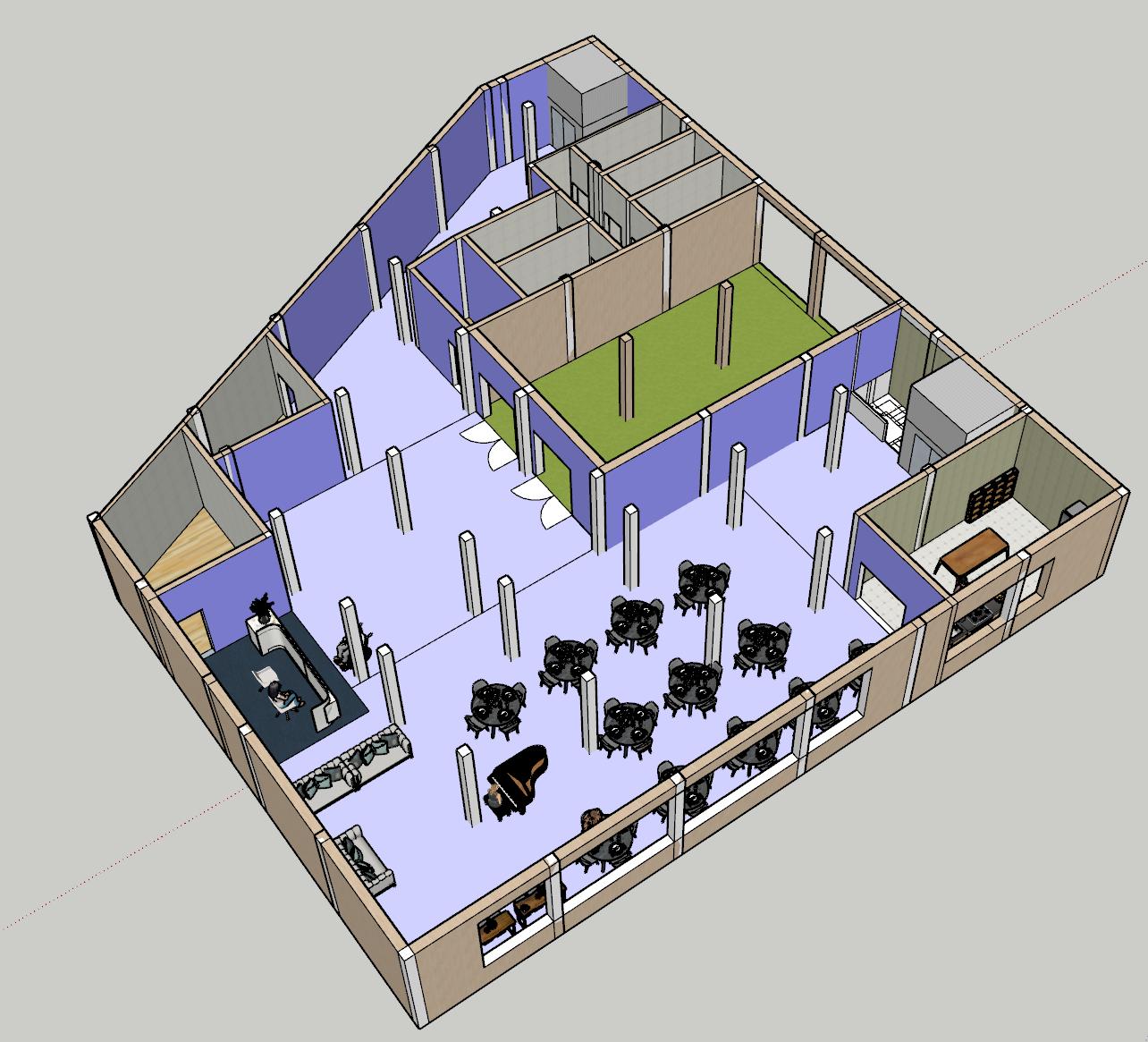 Figure 51. Foyer, Box office, Storage and Cafeteria. Author’s own image.