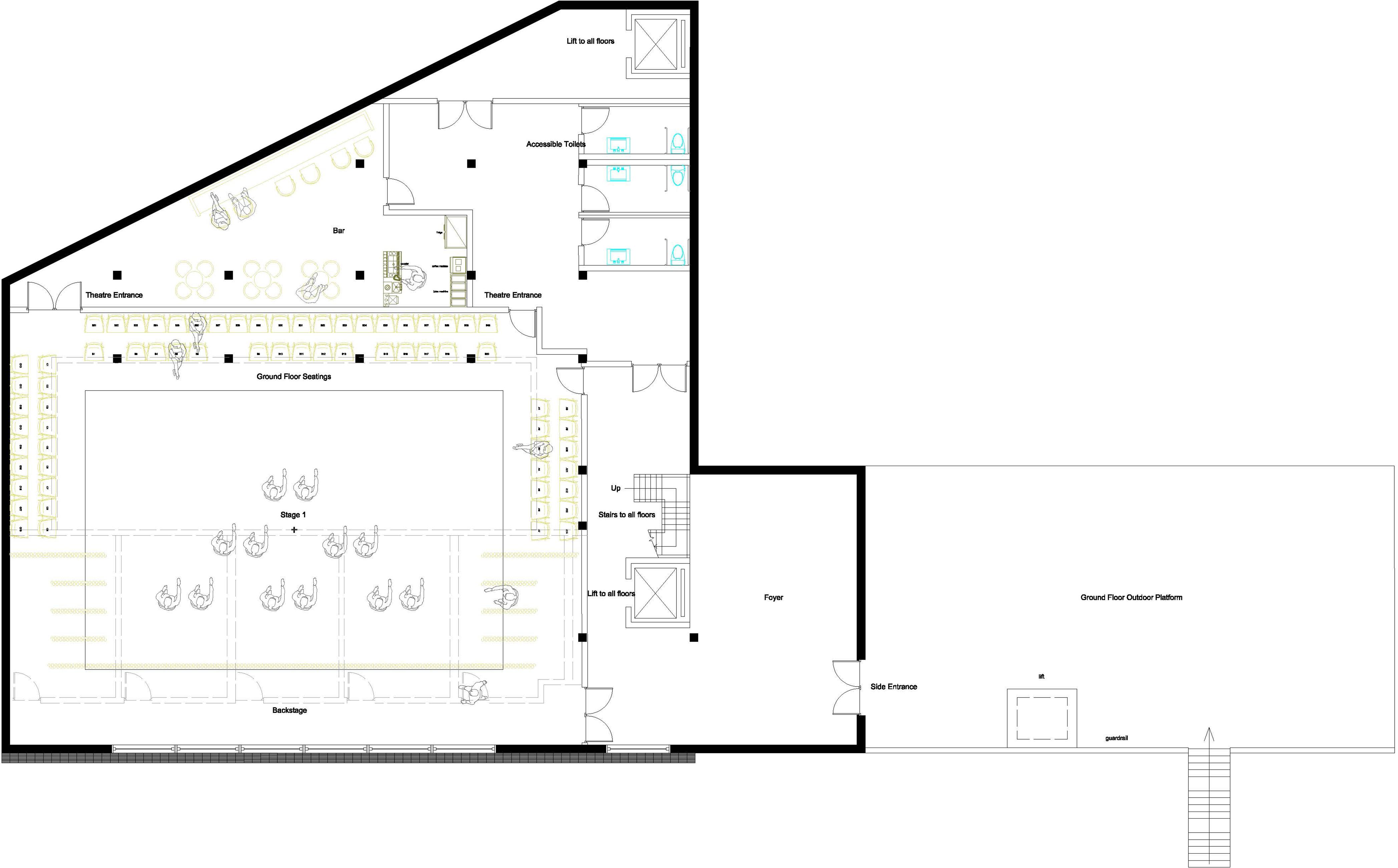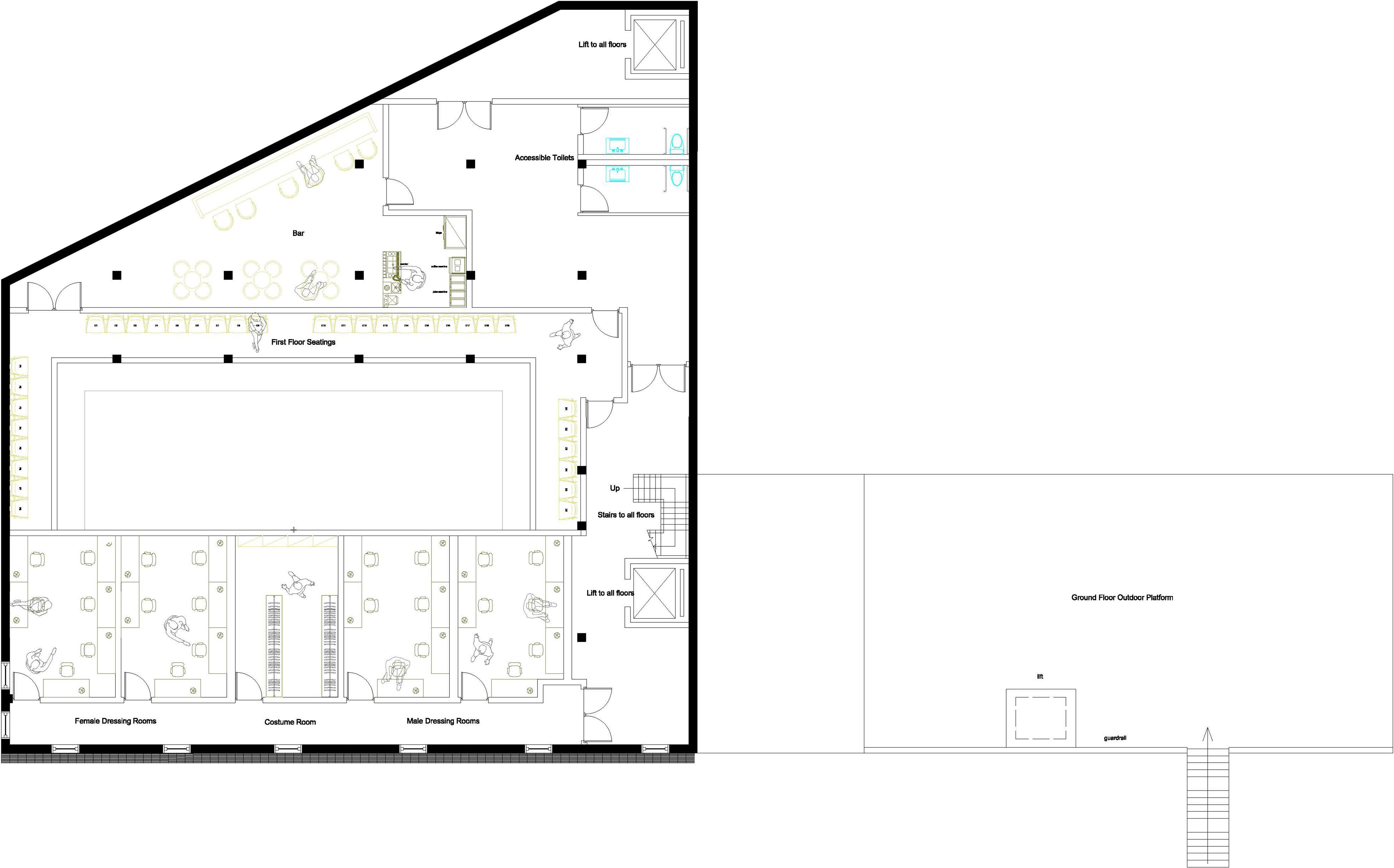 Figure 36. Users Experience Drawing of Theatre on Ground and First Floor. Author’s own drawing.