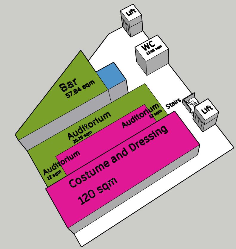 Figure 53. Bar, First Floor auditorium and Costume& Dressings. Author’s own image.