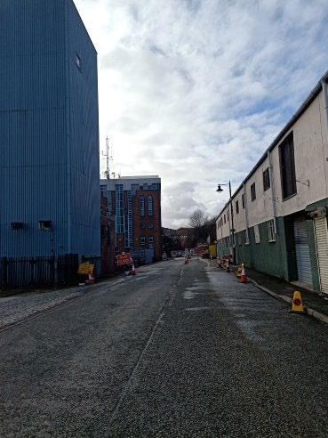 Figure 6. Bell street between former ice factory and an existing building on slope. Author’s own photograph.
