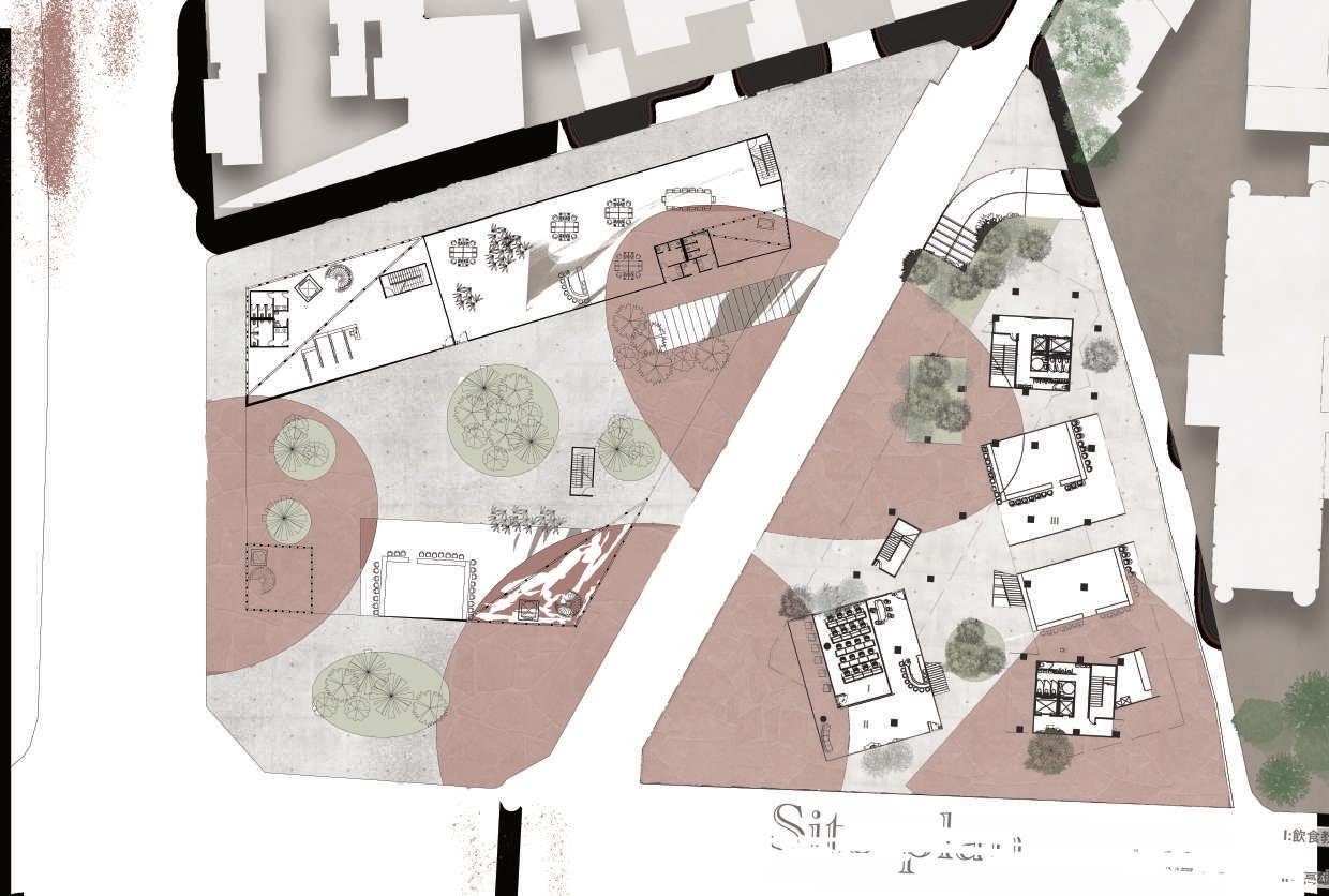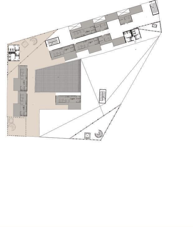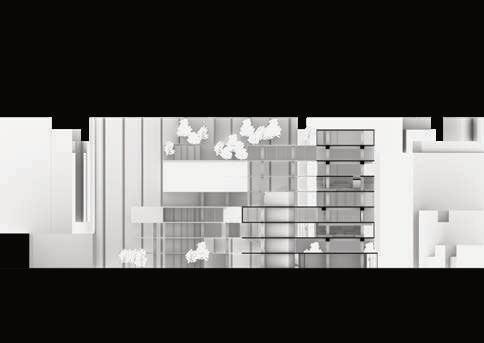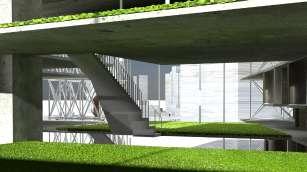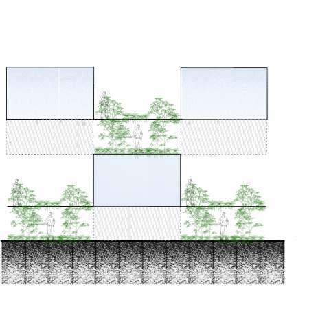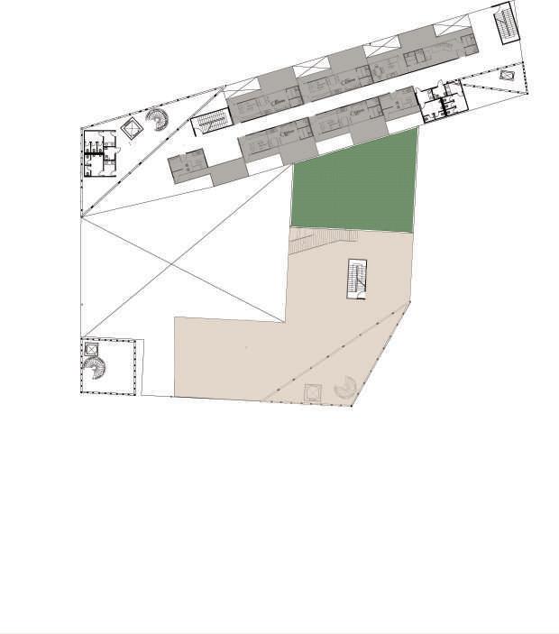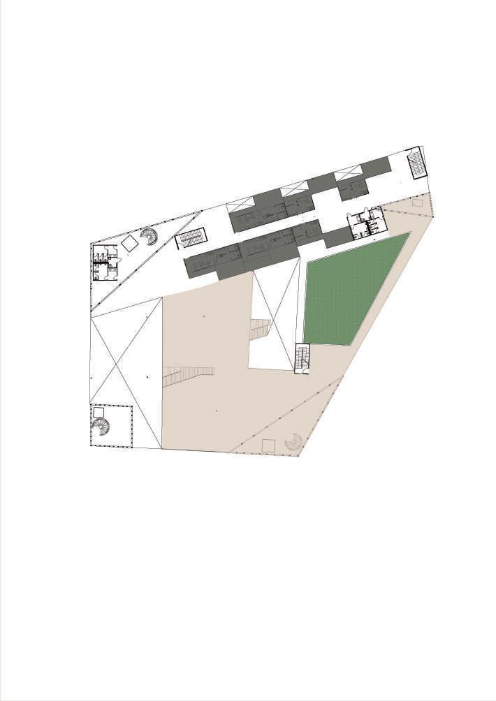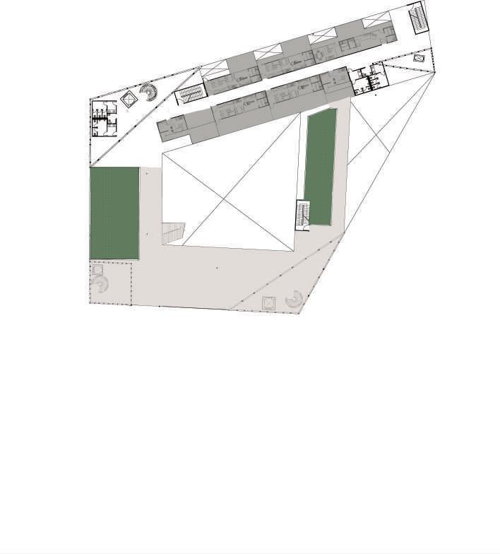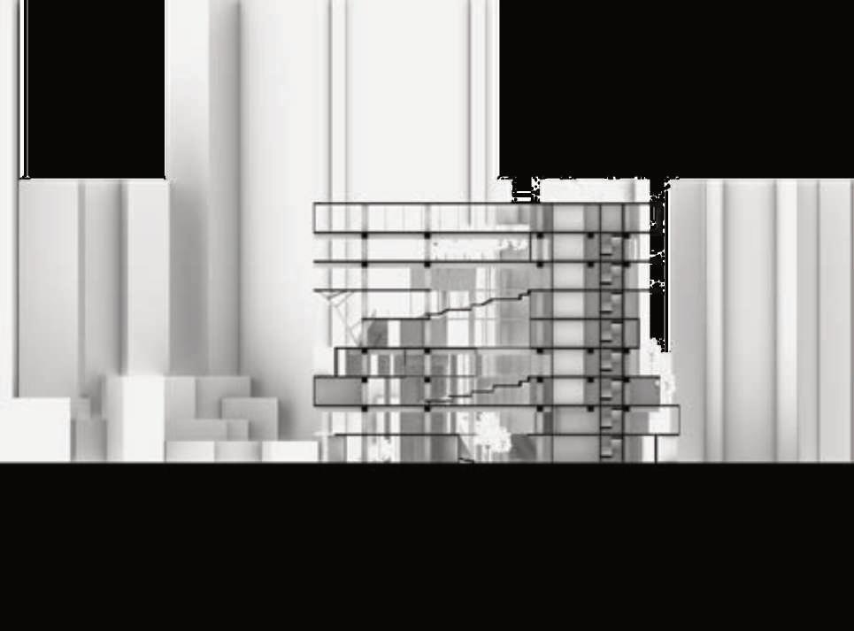露臺,創造可供休憩停留之半戶外空間,呼應此地位於商業區及學區,岸堤及陸地之中繼休息站之
