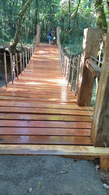 O Eco Park forneceu material e mão de obra para a construção de uma ponte que possibilita o trânsito de pessoas e bicicletas pela trilha, que será inaugurada em julho.