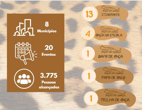 TheOnçaItinerante(JaguarontheRoad)consistsofactivities developedinpublicspacesinthesurroundingmunicipalities.It includesexhibitions,talksaboutjaguars,plasterfootprint workshops,filmscreeningsabouttheproject,facepainting, theater,paintingforchildren,andstorytelling.In2024,therewere 12suchactivities.