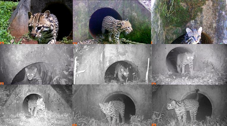 The species with the highest frequency of effective crossings so far weretheocelot(N=12),followedbytheblack-earedopossum(N=4) Otherspecimenssuchasthebrownfour-eyedopossum(Metachirus nudicaudatus), agouti, small rodents, and tegu were recorded making effective crossings only once. The records of completed crossings were made in simple and interconnected drainage structureswithoutthepresenceofwaterordebrisaccumulation.