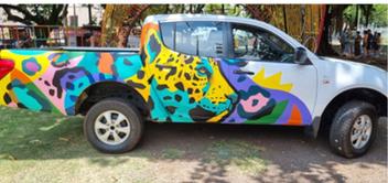 Igor, along with the Project Jaguars of Iguaçu team, conducted a graffiti workshop for students at this school.Attheendoftheworkshop,thestudentscollectivelycreatedajaguargraffitimuralonthewall.In 2024,weheldmeetingswiththeMatelândiaCityHall,anditwasdecidedthat4graffitiartworkswouldbe createdonviaductsinthecity,inadditiontotwograffitiworkshops.Wepreparedaformalproposalthat wassubmittedtothecityhall,andthegraffitiisexpectedtobecompletedin2025 ArtistIgorIzy,in2024, graffitied the Toca da Onça (Jaguar Den - our office) and the project vehicle free of charge, and also performedalivepaintingduringtheNationalJaguarDayceremony.